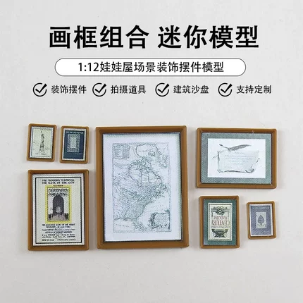 娃娃屋微缩仿真壁画迷你墙面装饰壁挂袖珍风景画相框ob11欧式画框
