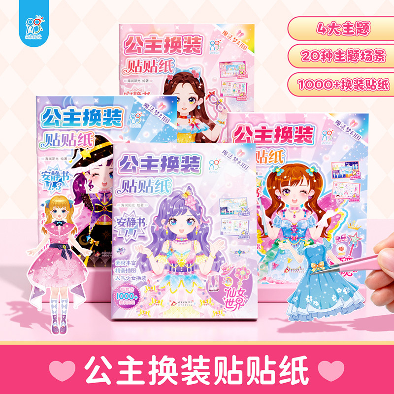 抖音同款】公主换装贴贴纸安静书2000+贴纸2-6岁女孩益智玩具专注力培养儿童早教书全脑开发思维贴贴画启蒙认知幼儿园换装贴纸女孩