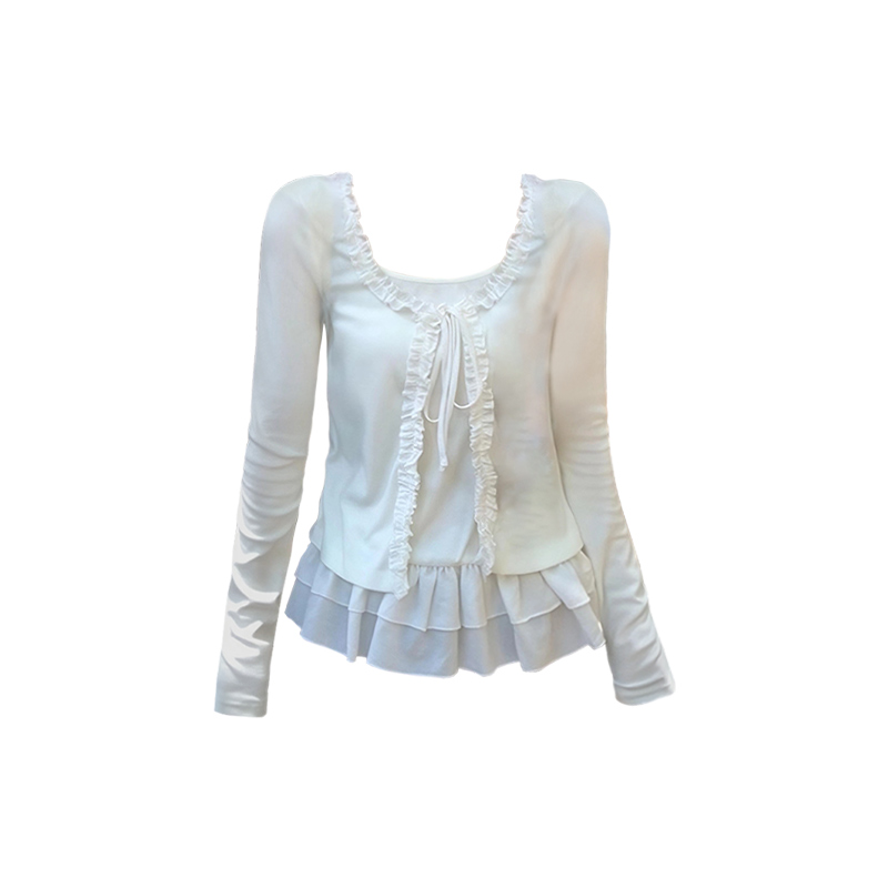 白色假两件开衫长袖T恤女秋季款