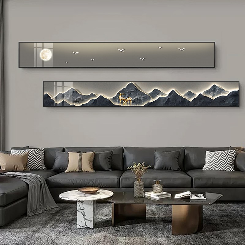 现代轻奢客厅装饰画背靠金山卧室床头F组合壁画高级沙发背景墙挂