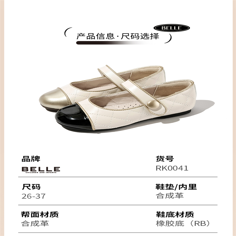 百丽童鞋女童小皮鞋2025春季舒适软底鞋公主鞋儿童小香风拼色单鞋