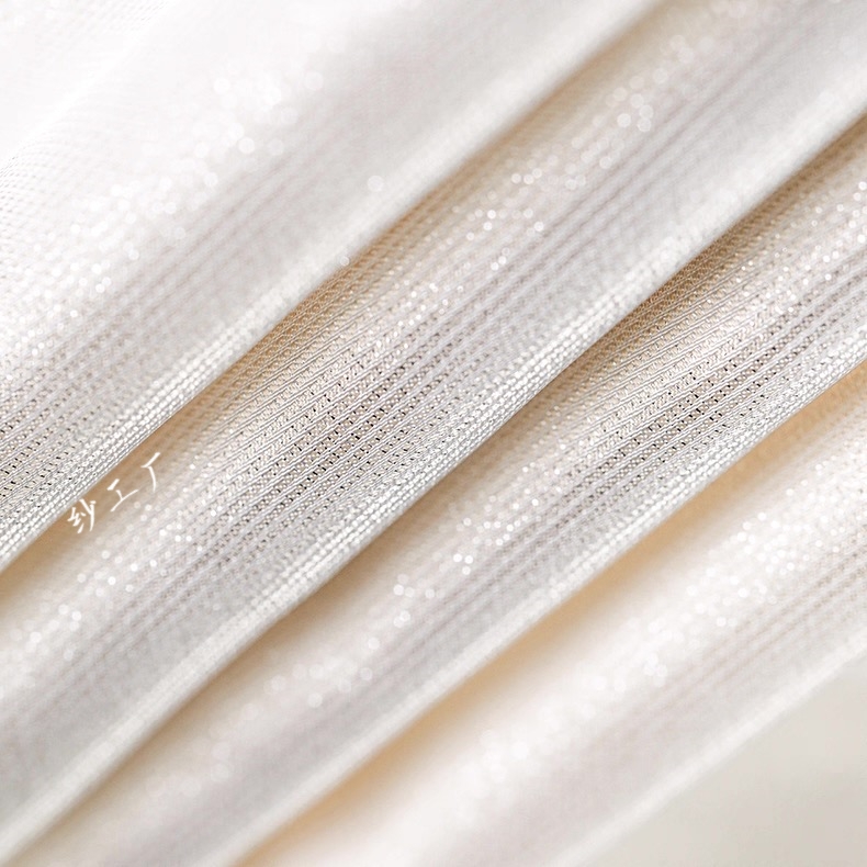 闪光加厚加硬款华美金香槟色欧根纱布料婚礼服旗袍汉服设计师面料
