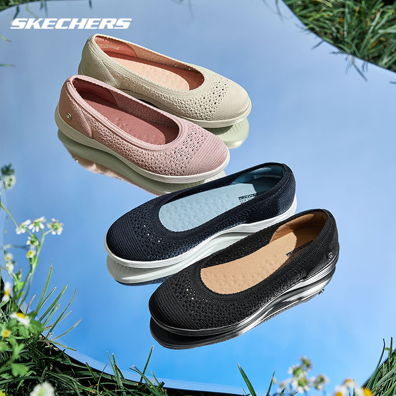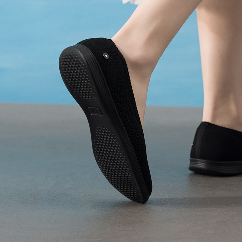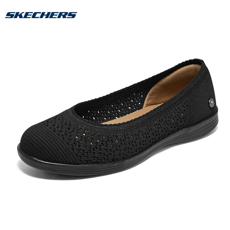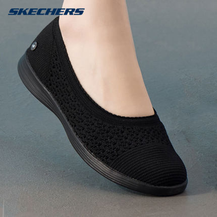 斯凯奇女鞋秋季透气蕾丝休闲鞋浅口单鞋官网一脚穿黑色老人妈妈鞋