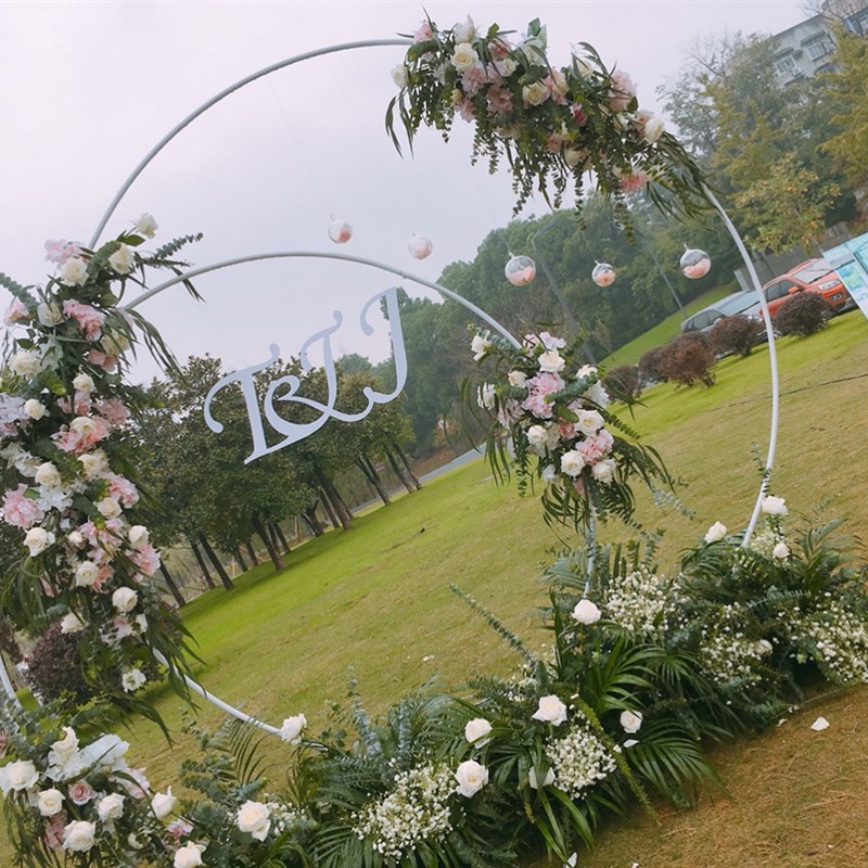 新款婚庆道具铁艺网格屏风圆环婚礼布置气球拱门舞台背景装饰摆件
