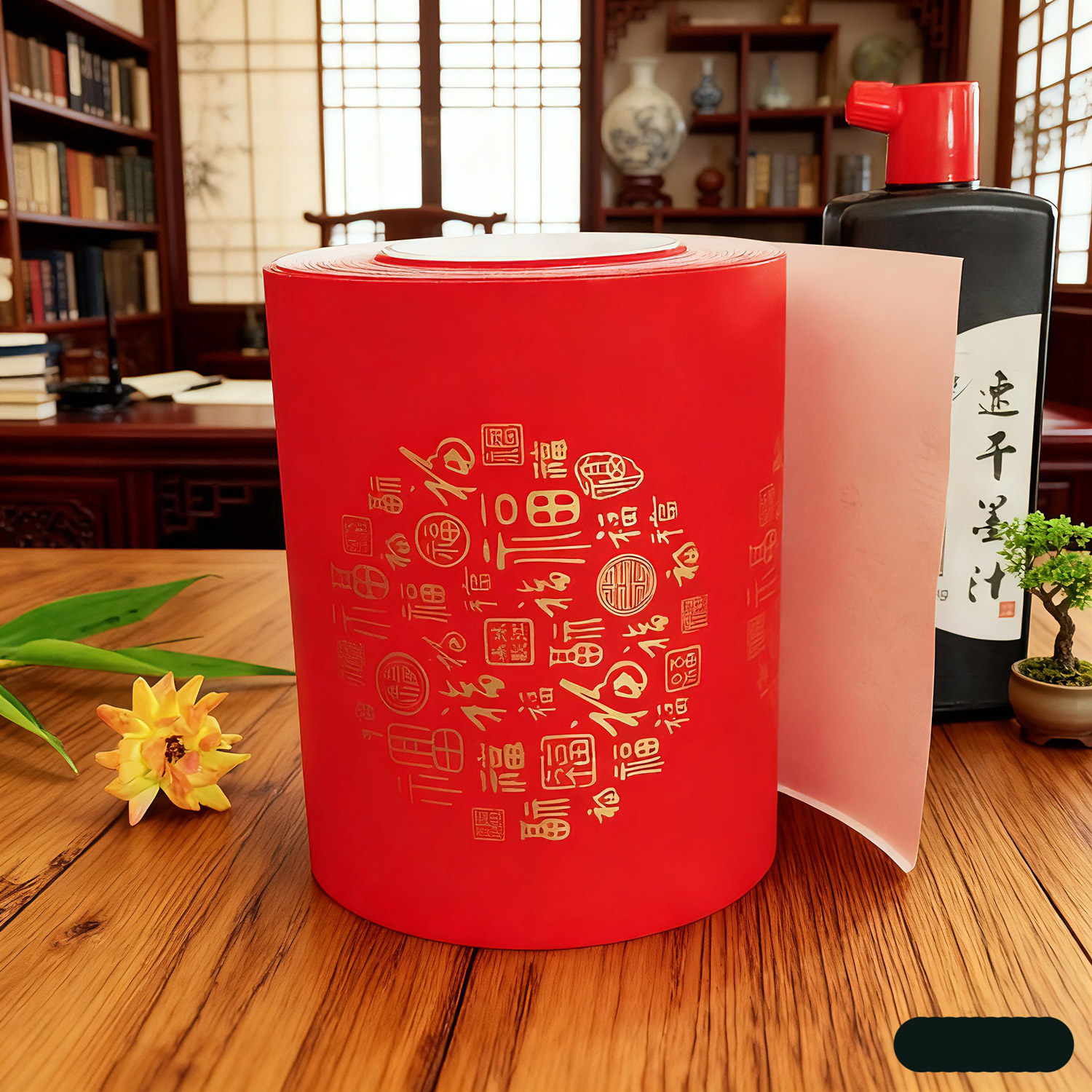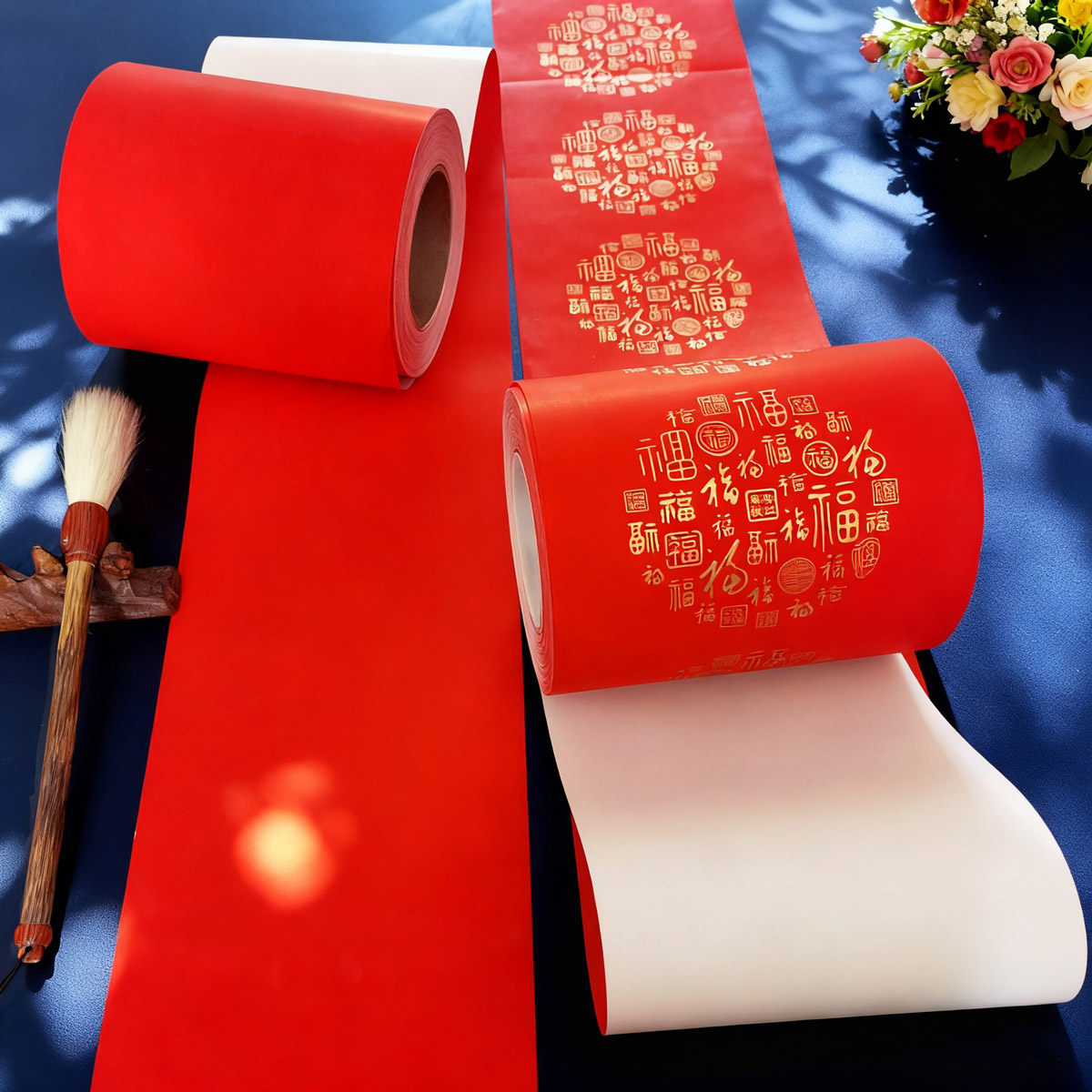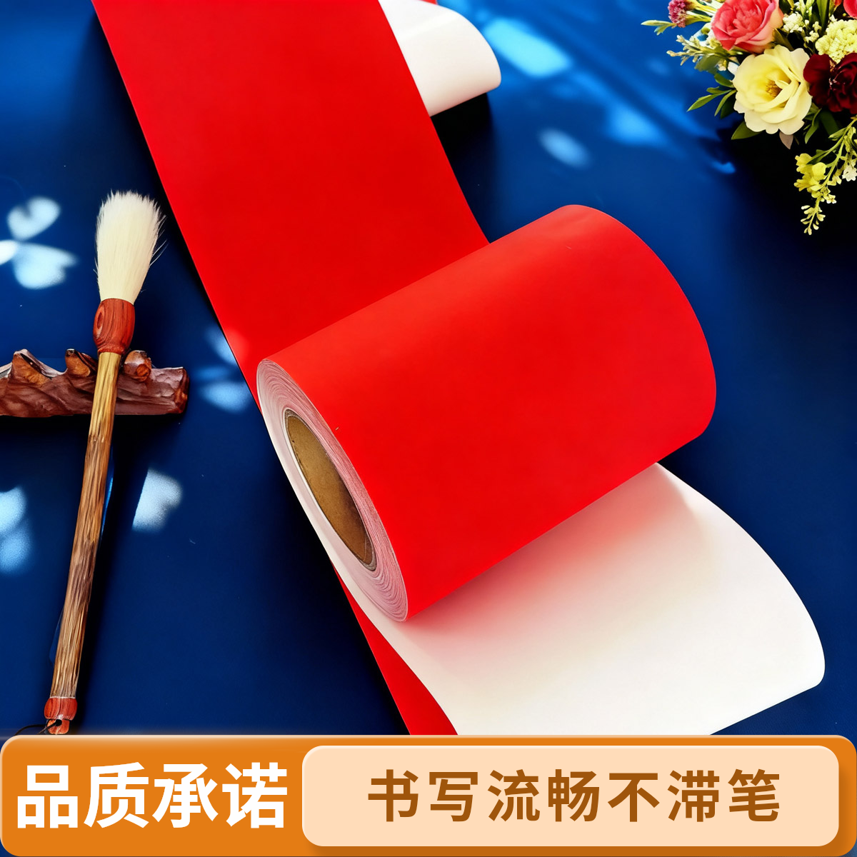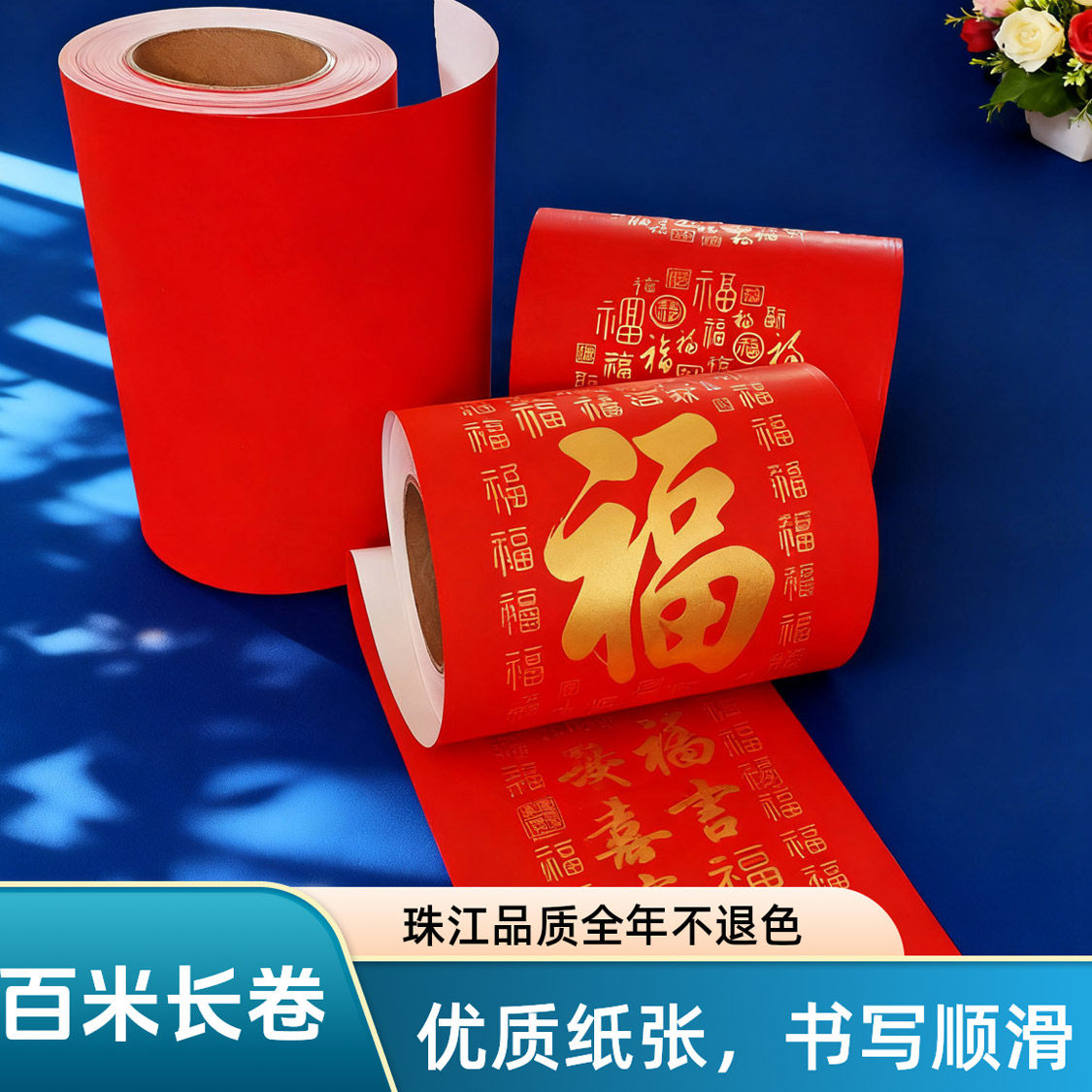 珠江春联万年红对联纸结婚专用婚庆喜庆红色福字毛笔书写纸加厚经典瓦当100m长卷防雨抗晒不退色高品质铜版纸