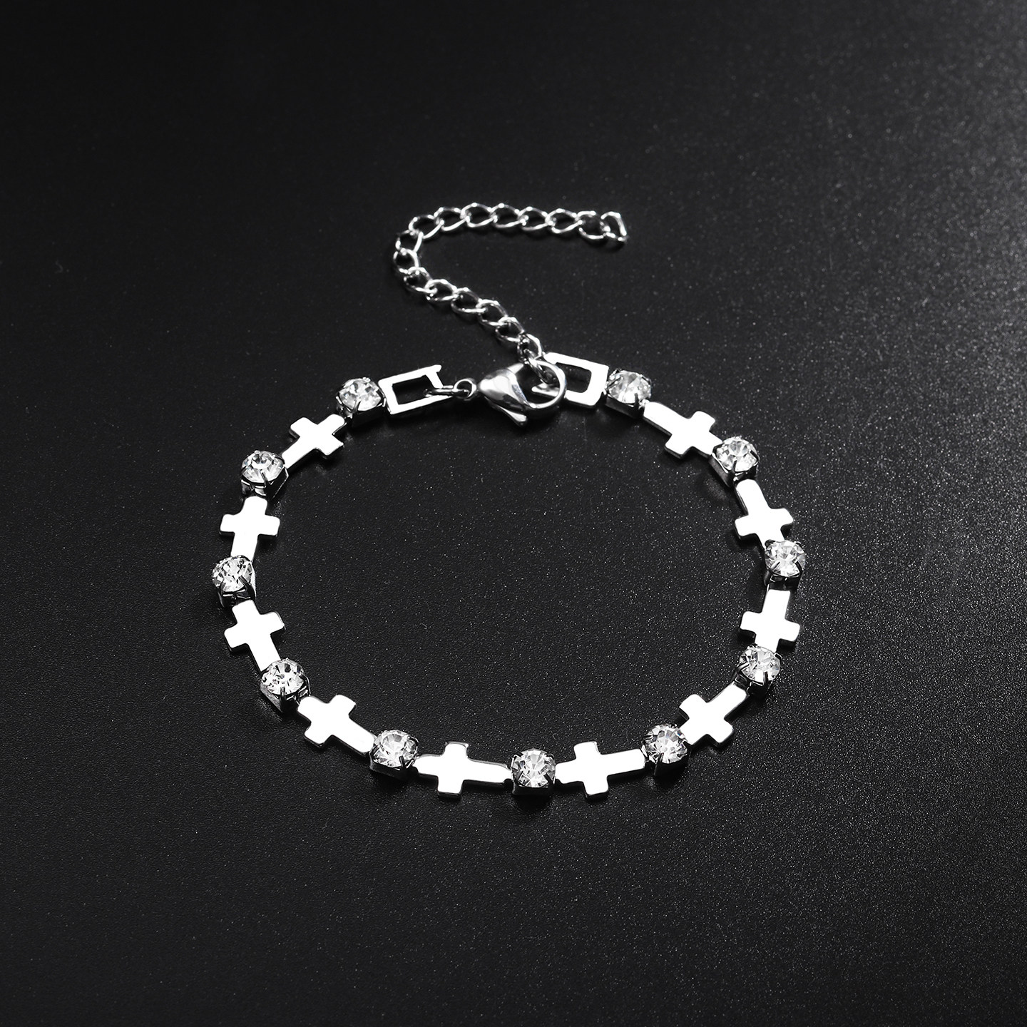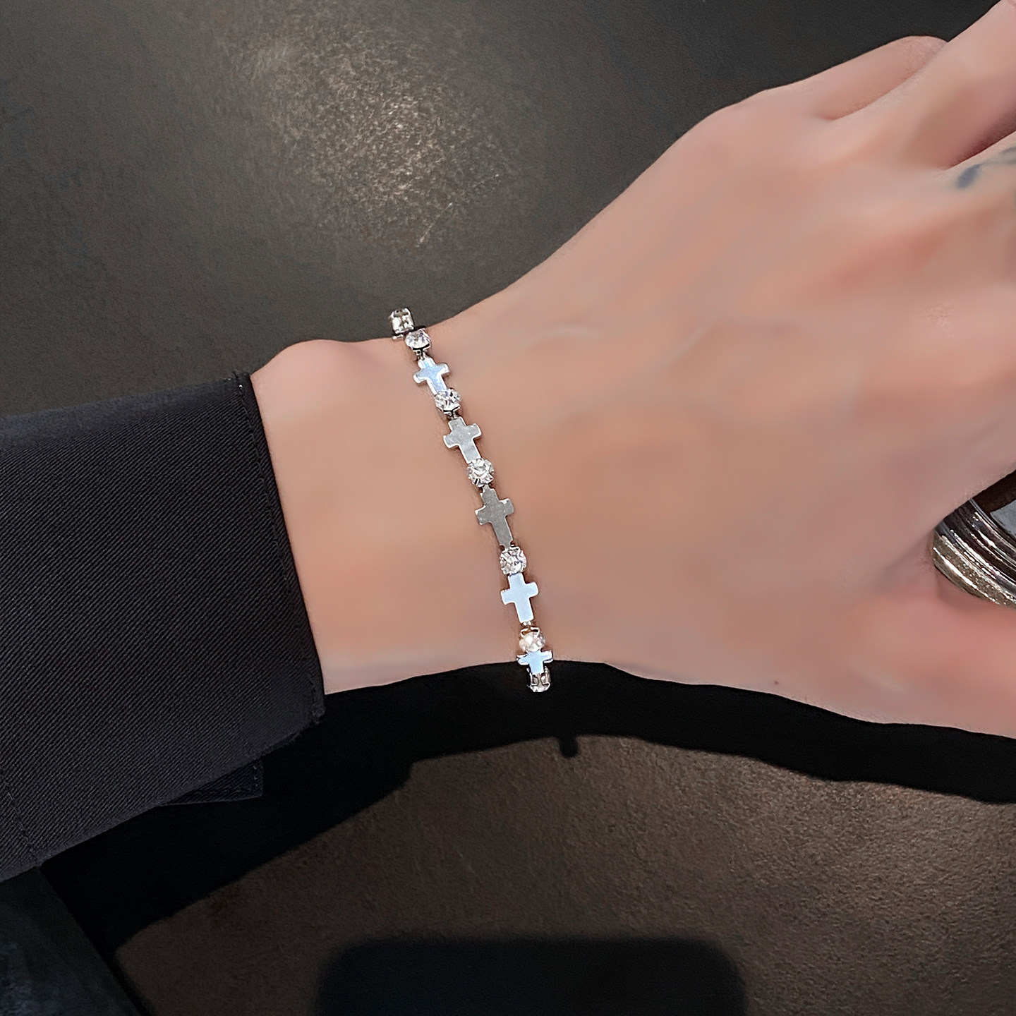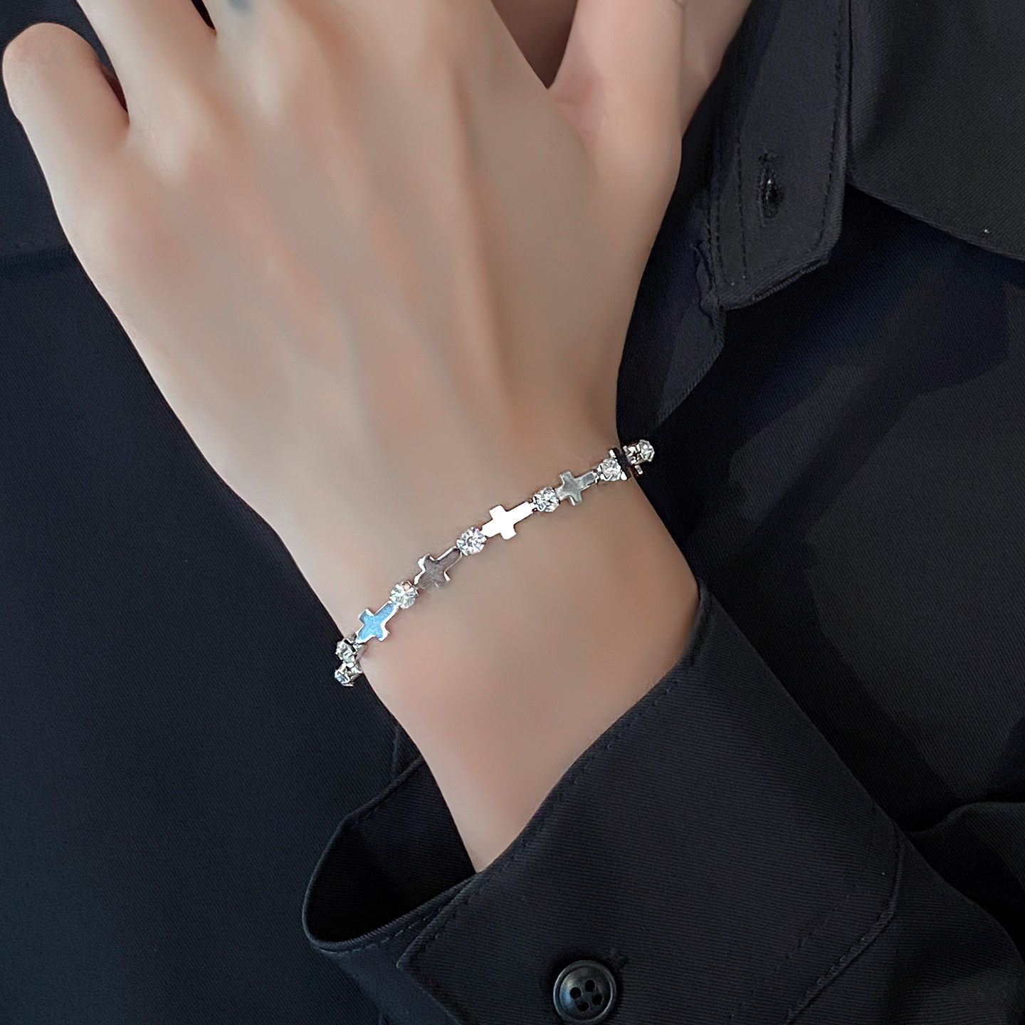 男士钛钢手链十字拼接人工锆石潮流百搭高级感男生百搭个性手饰品