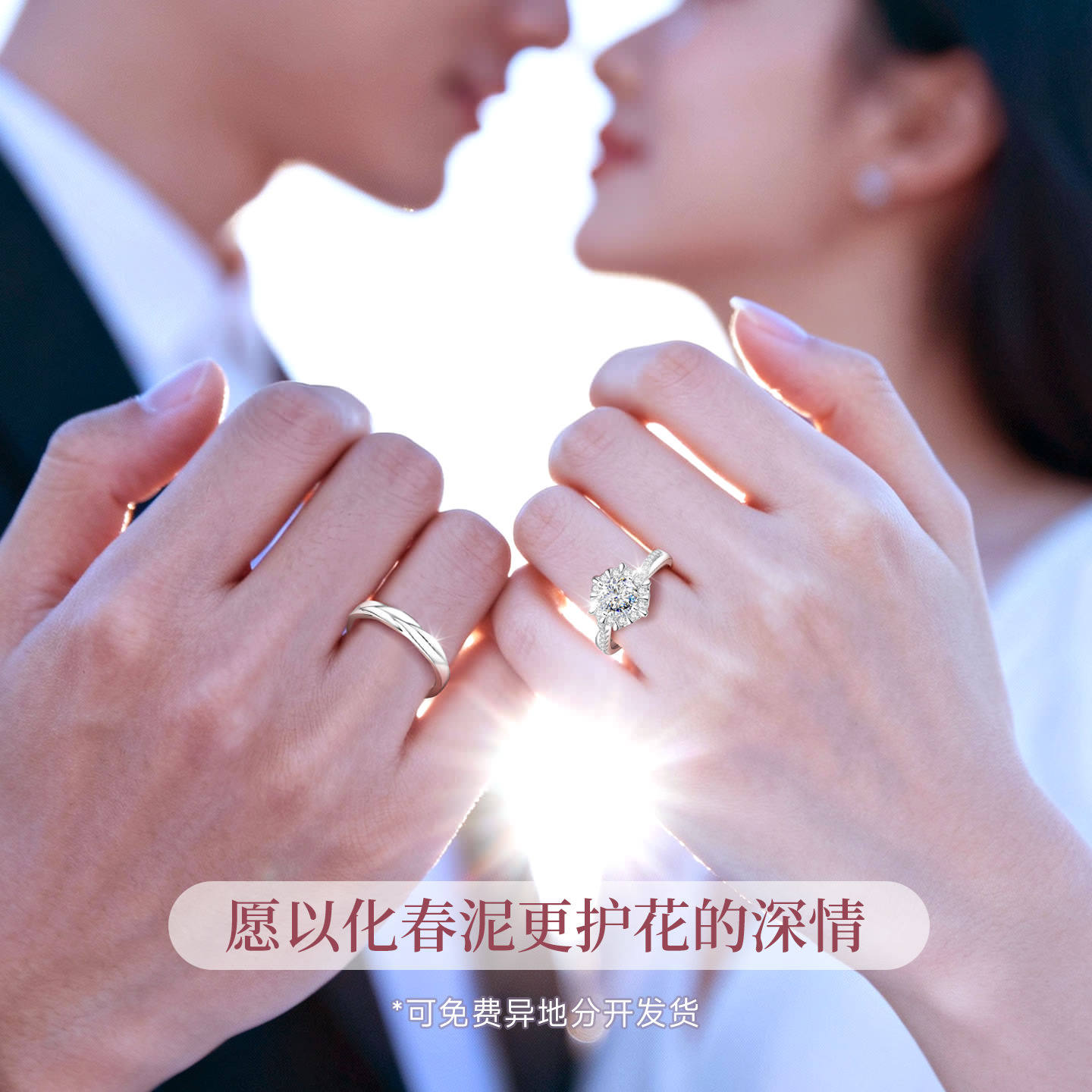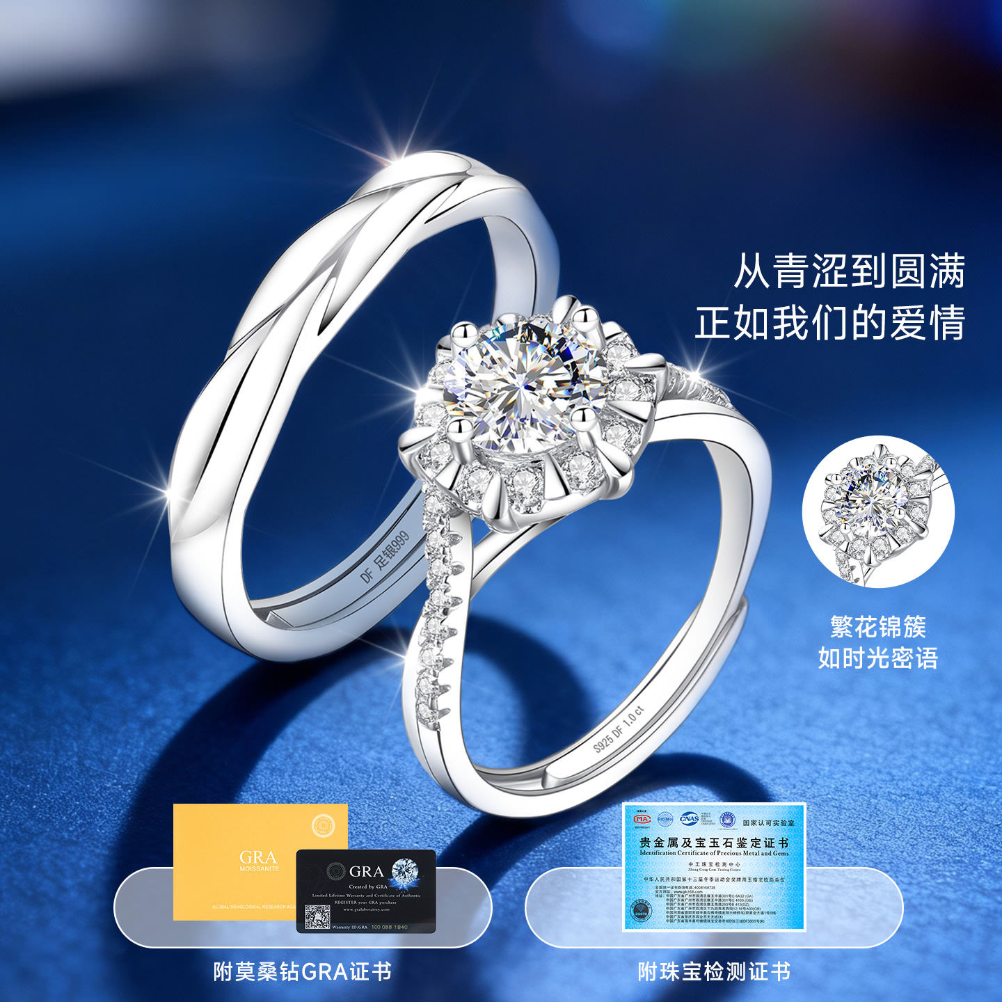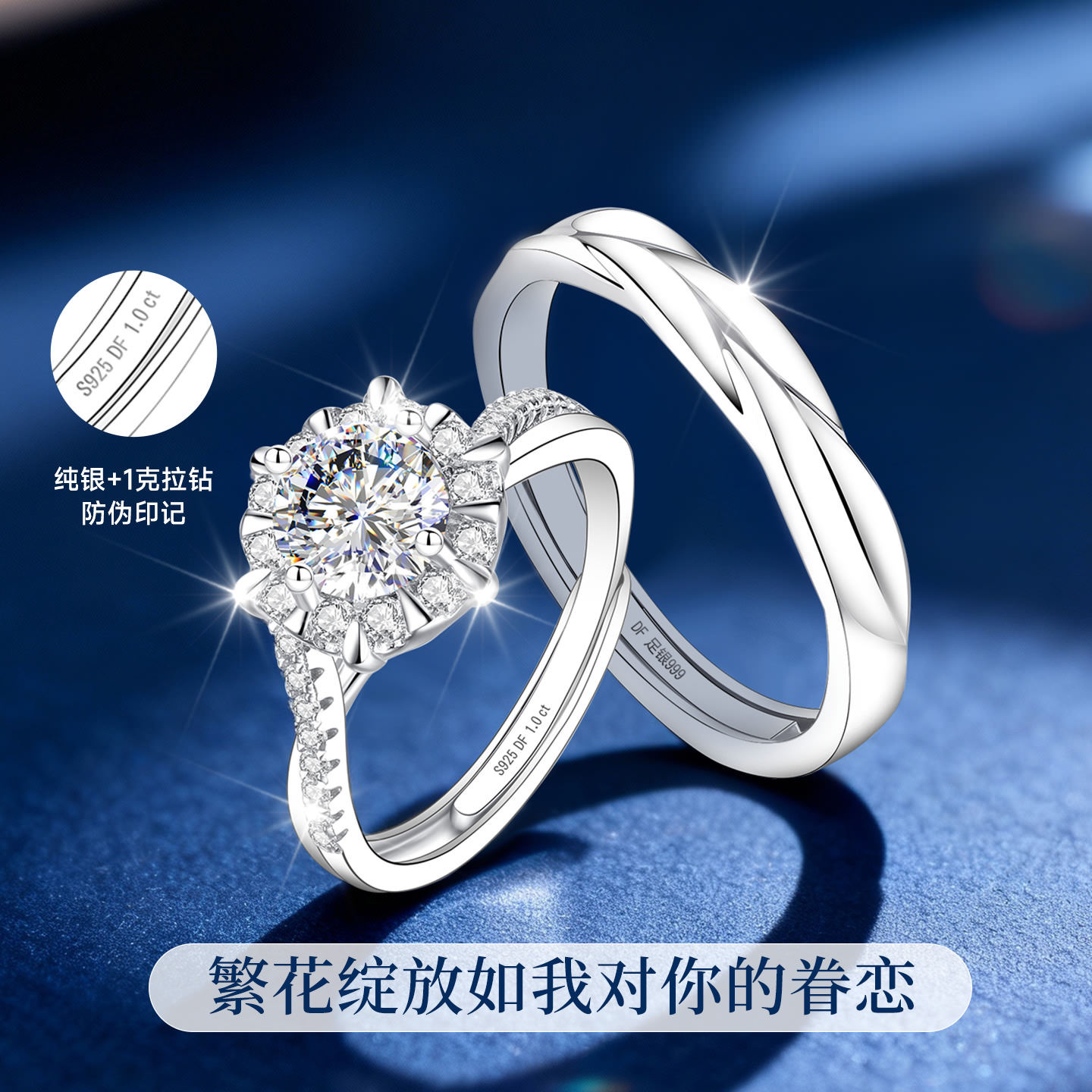 情侣对戒银纯银一对情侣款手捧花戒指婚礼结婚求婚莫桑钻钻戒婚戒
