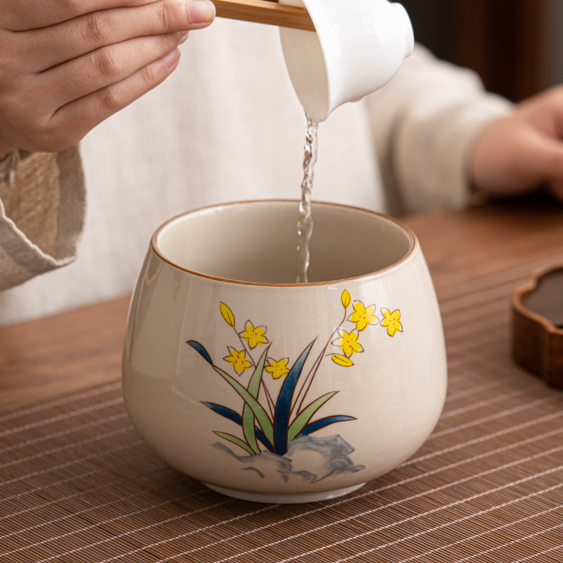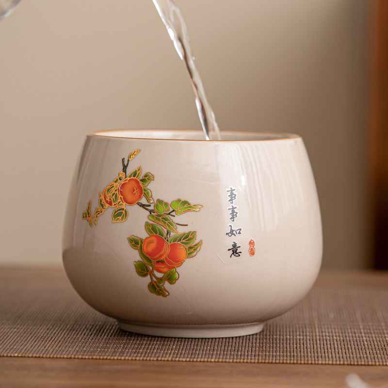 草木灰大号茶渣缸功夫茶道配件茶杯收纳陶瓷茶洗笔洗水盂废水桶