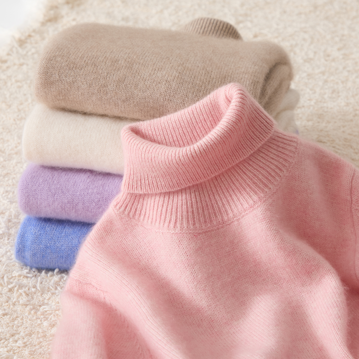 7针加厚儿童100%纯山羊绒高翻领男童女童纯色保暖针织打底羊绒衫