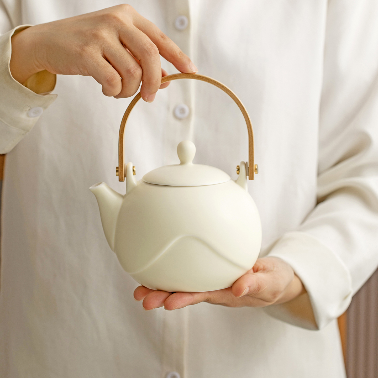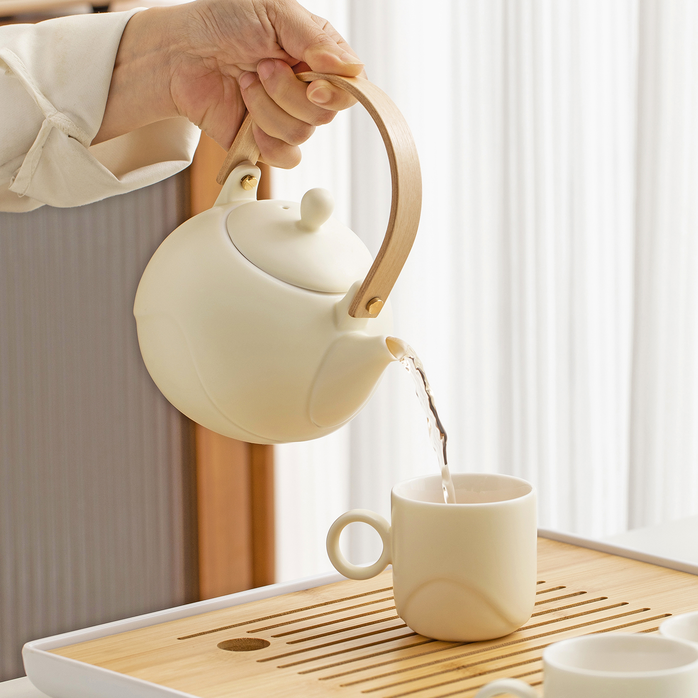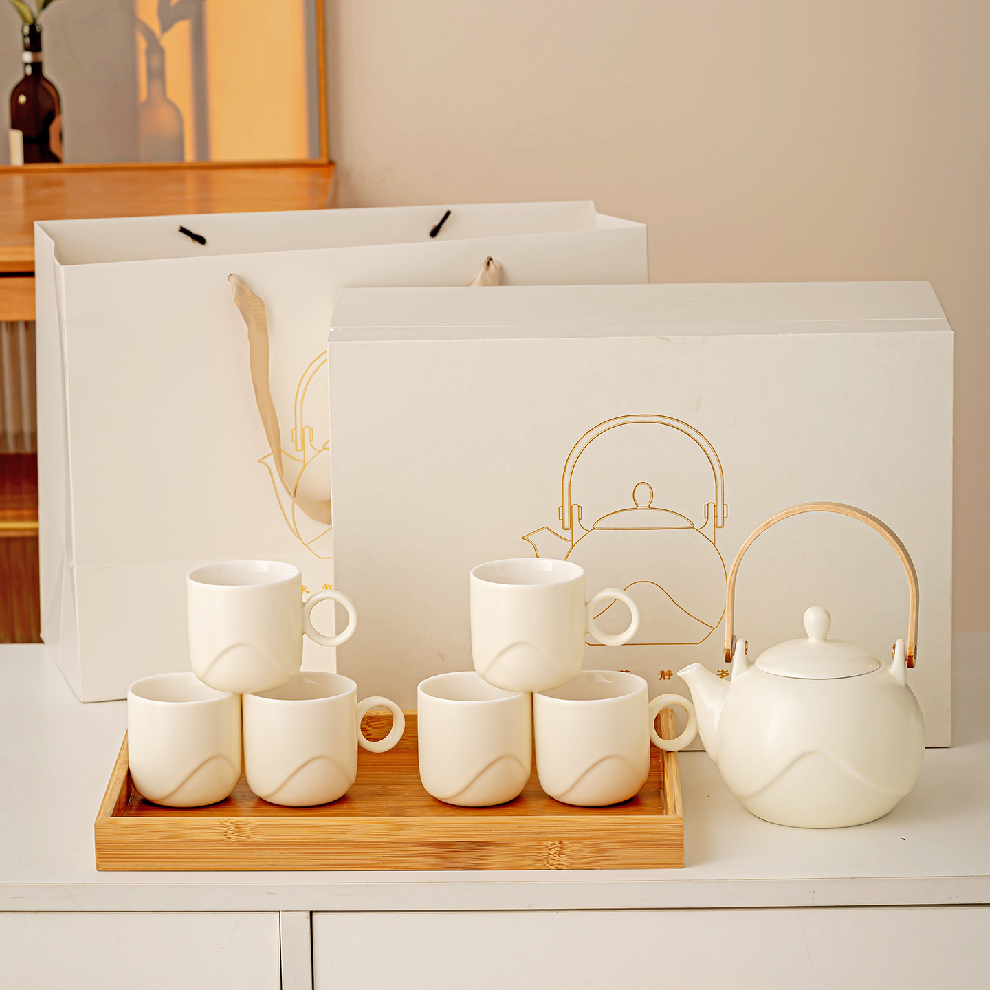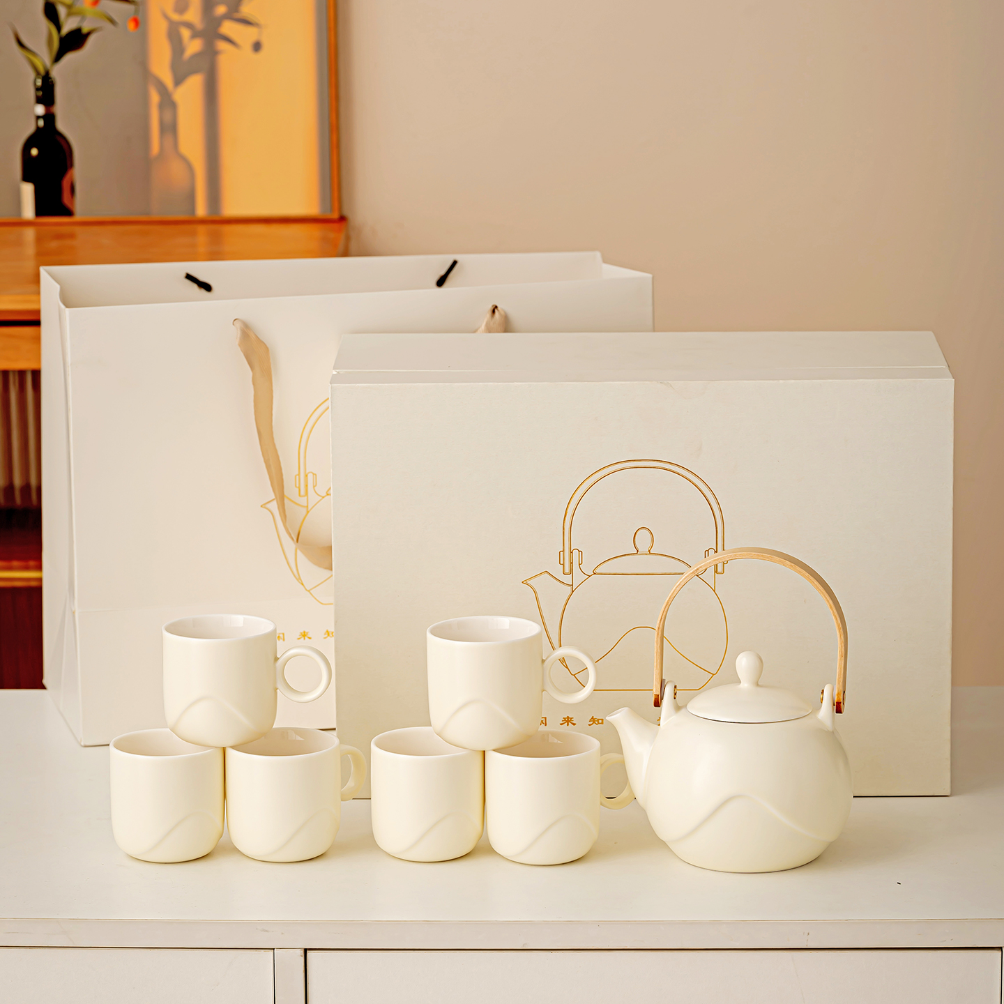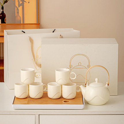 奶油风陶瓷提梁茶壶茶杯创意商务礼品套装乔迁生日结婚送闺蜜老师