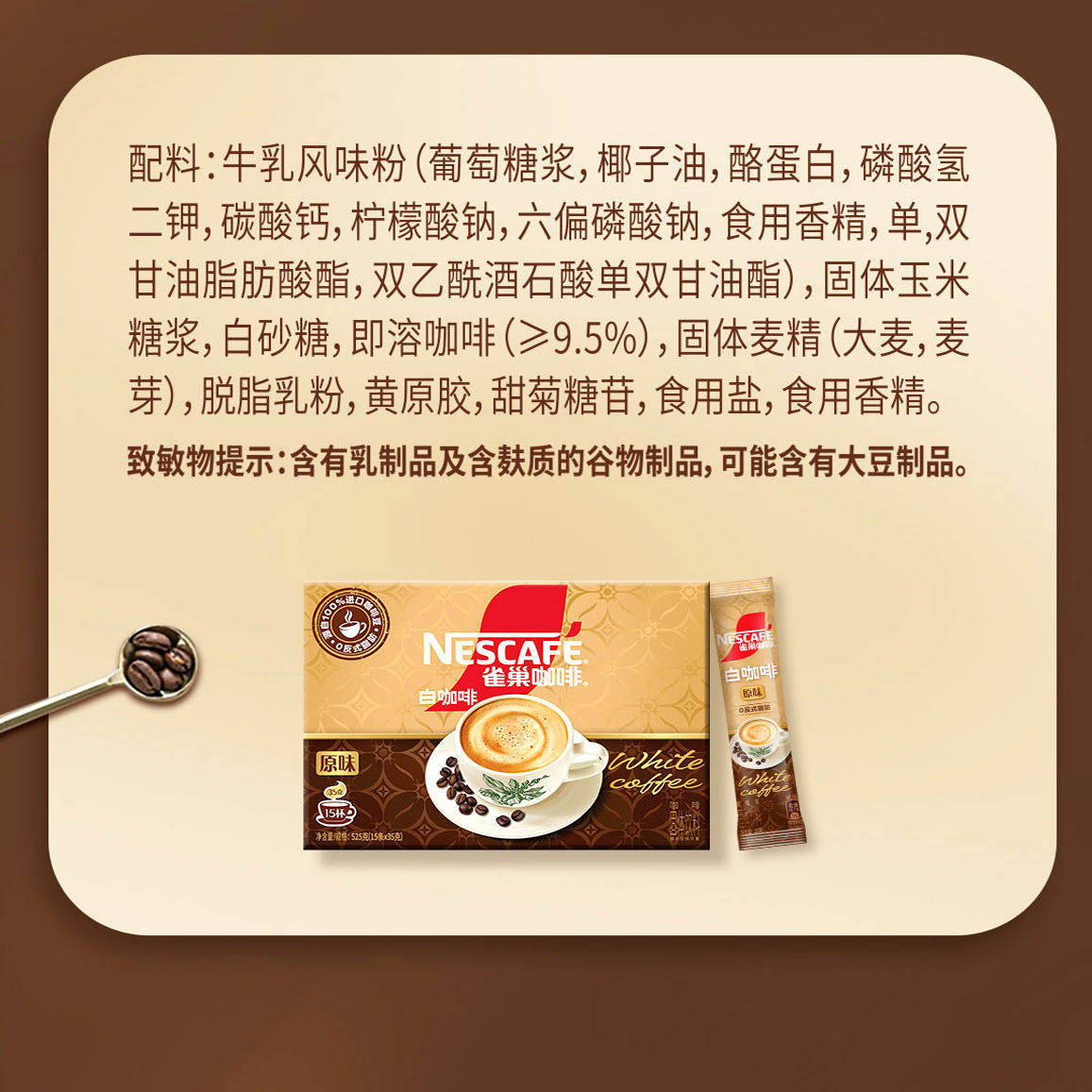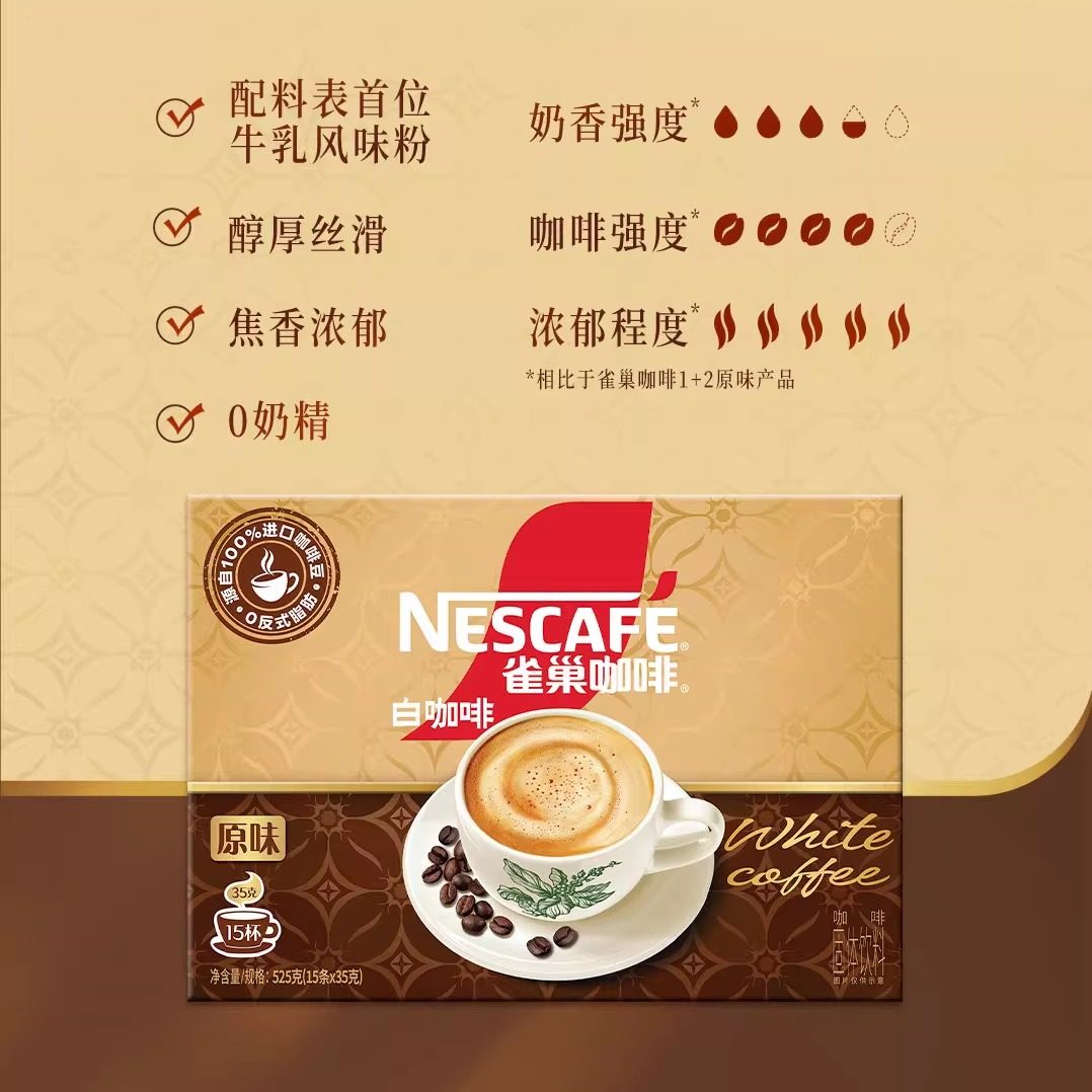 雀巢白咖啡0反式脂肪酸焦香原味15条盒装马来西亚风味咖啡饮品35g