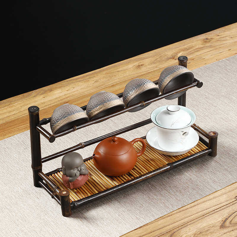 架子茶杯复古展示茶具架收纳紫竹盘泡双层沥水竹制竹排中式手工干
