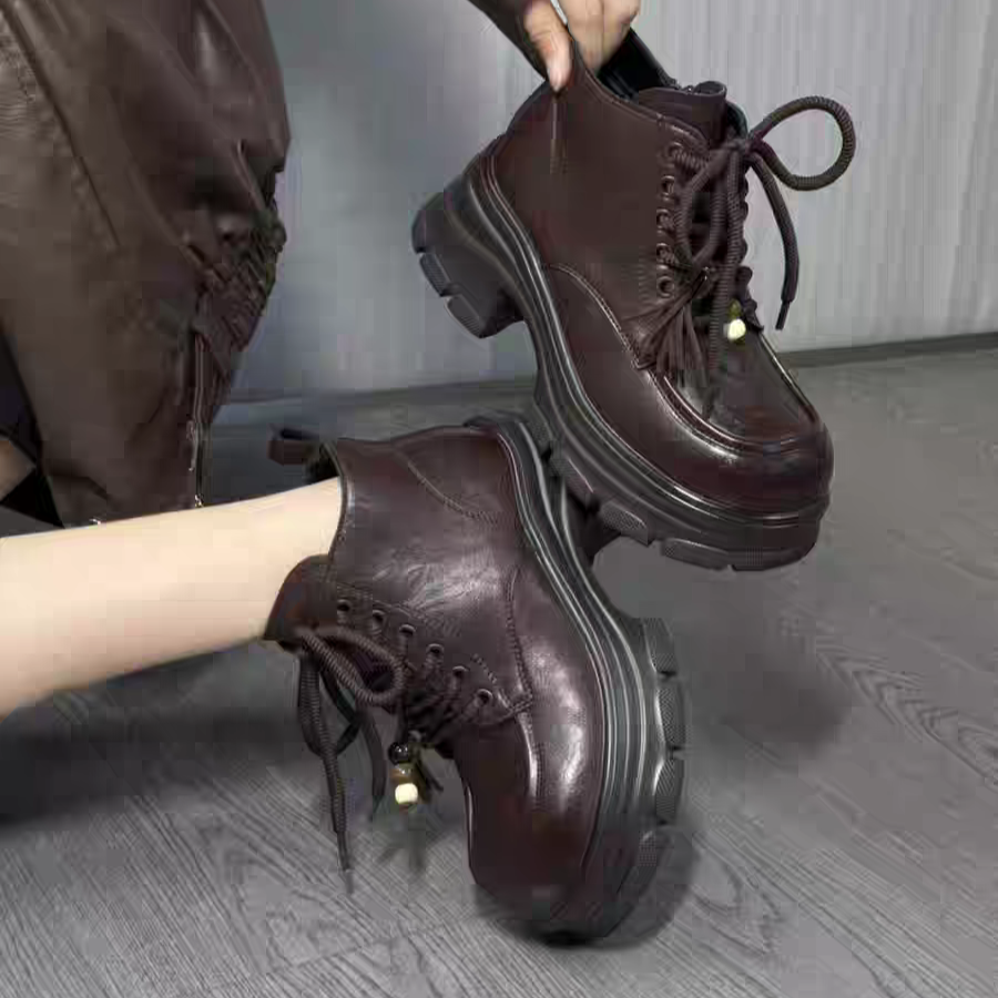 她菲娅2025冬新款欧货马丁靴女英伦风小个子短靴轻便小皮鞋女33-8