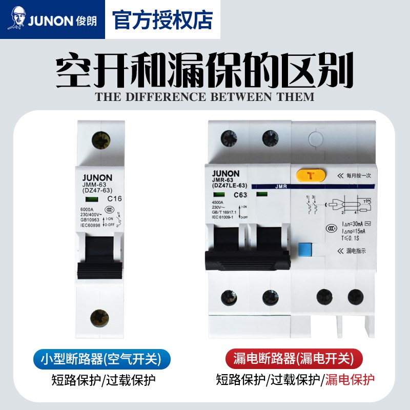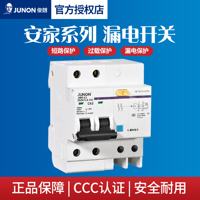 俊朗安家漏电断路器家用空气开关带漏电保护DZ47空开漏保2P 63A