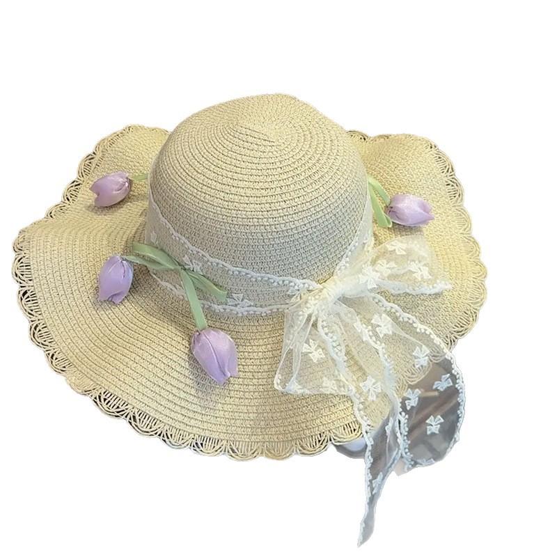 夏季花边少女草编太阳帽女2025新款网红夏日草帽防晒海边沙滩拍照