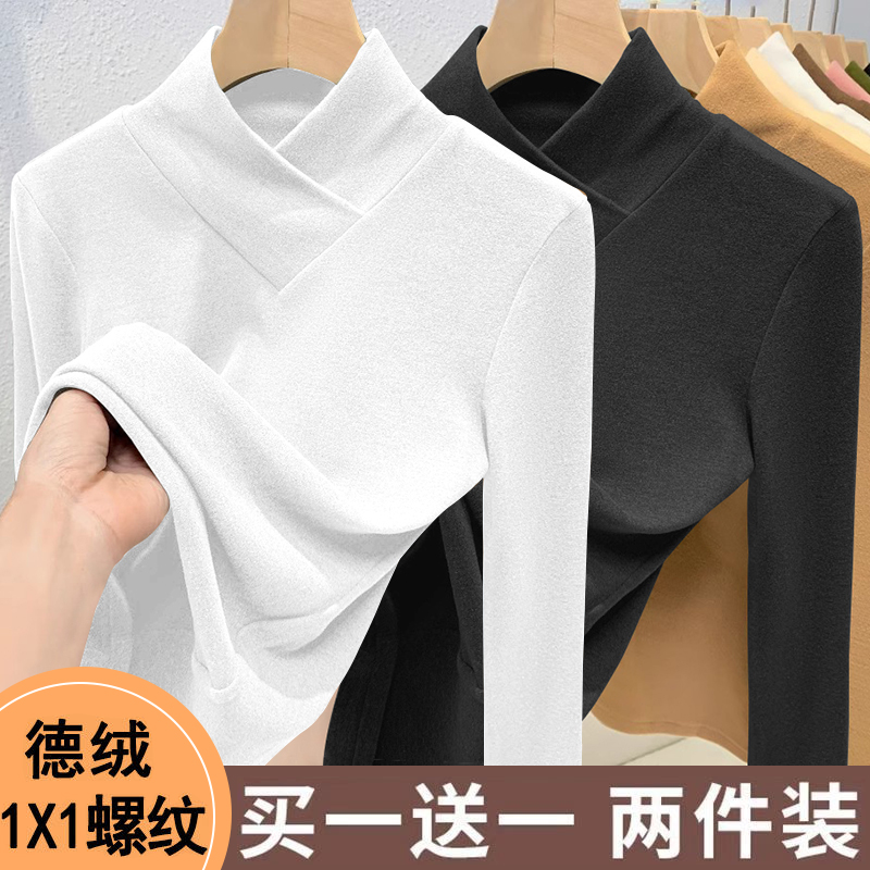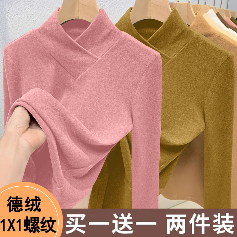外贸妈妈中老年双面德绒半高领打底衫女修身保暖内搭长袖t恤上衣