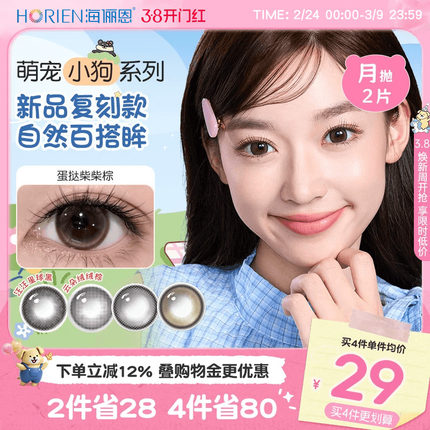【新品】海俪恩萌宠小狗美瞳月抛2片彩色近视隐形眼镜蛋挞柴柴棕