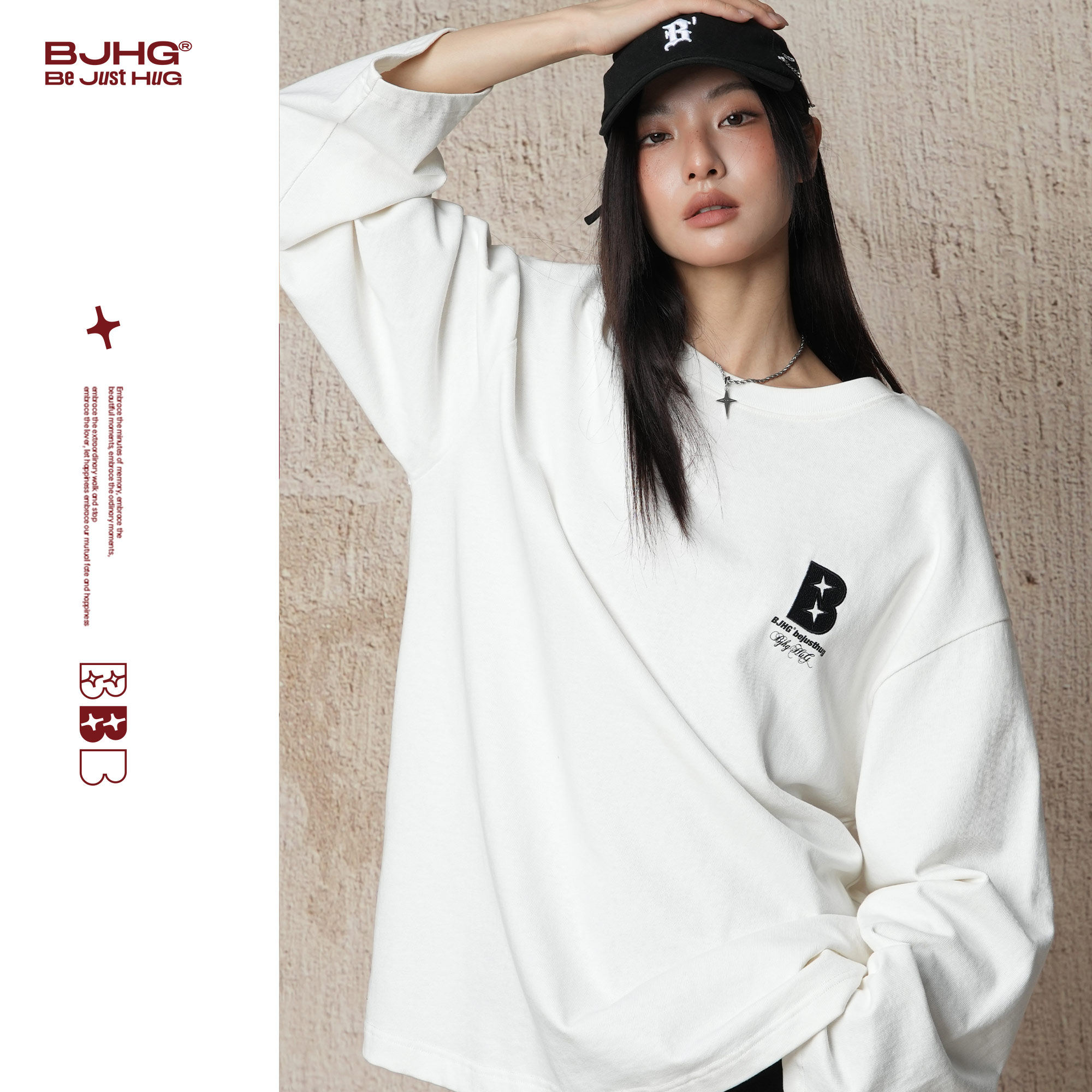 BJHG不计后果 美式纯棉长袖t恤男女款春季宽松圆领卫衣针织打底衫
