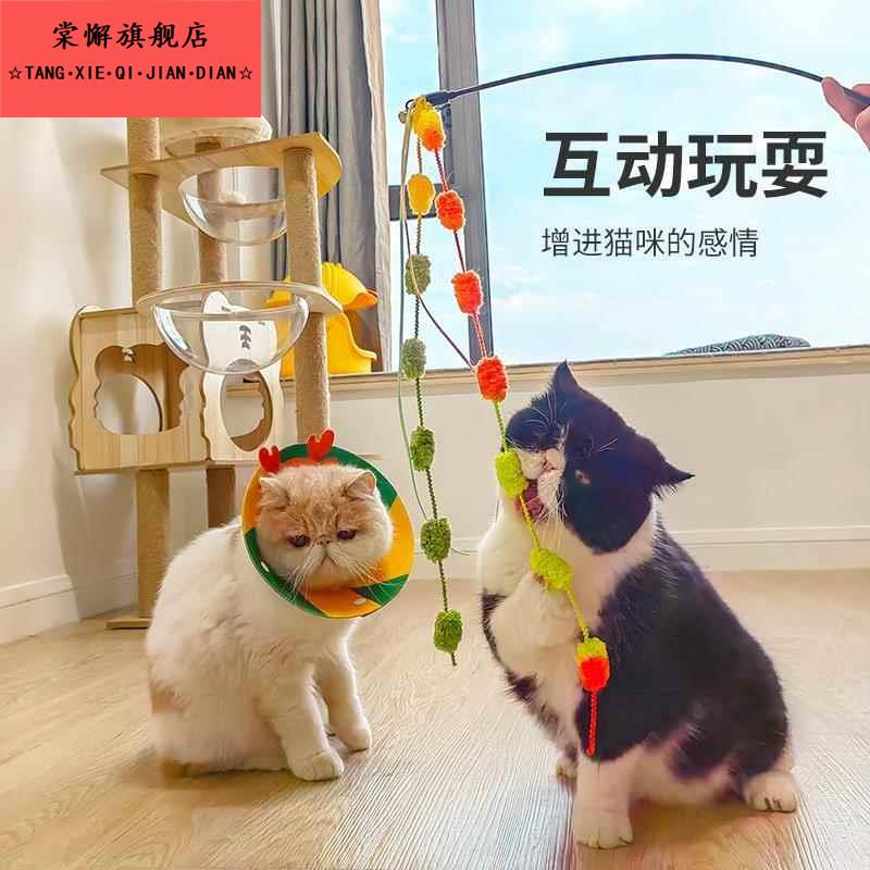 猫咪长杆解闷棒百宠岛猫玩具自嗨解闷神器毛绒消耗体力带铃铛猫咪