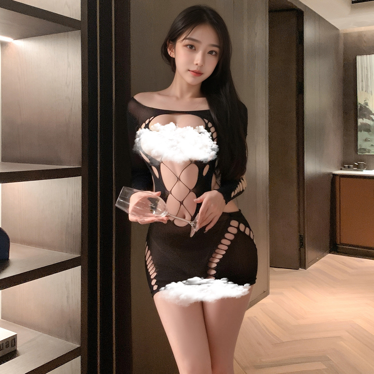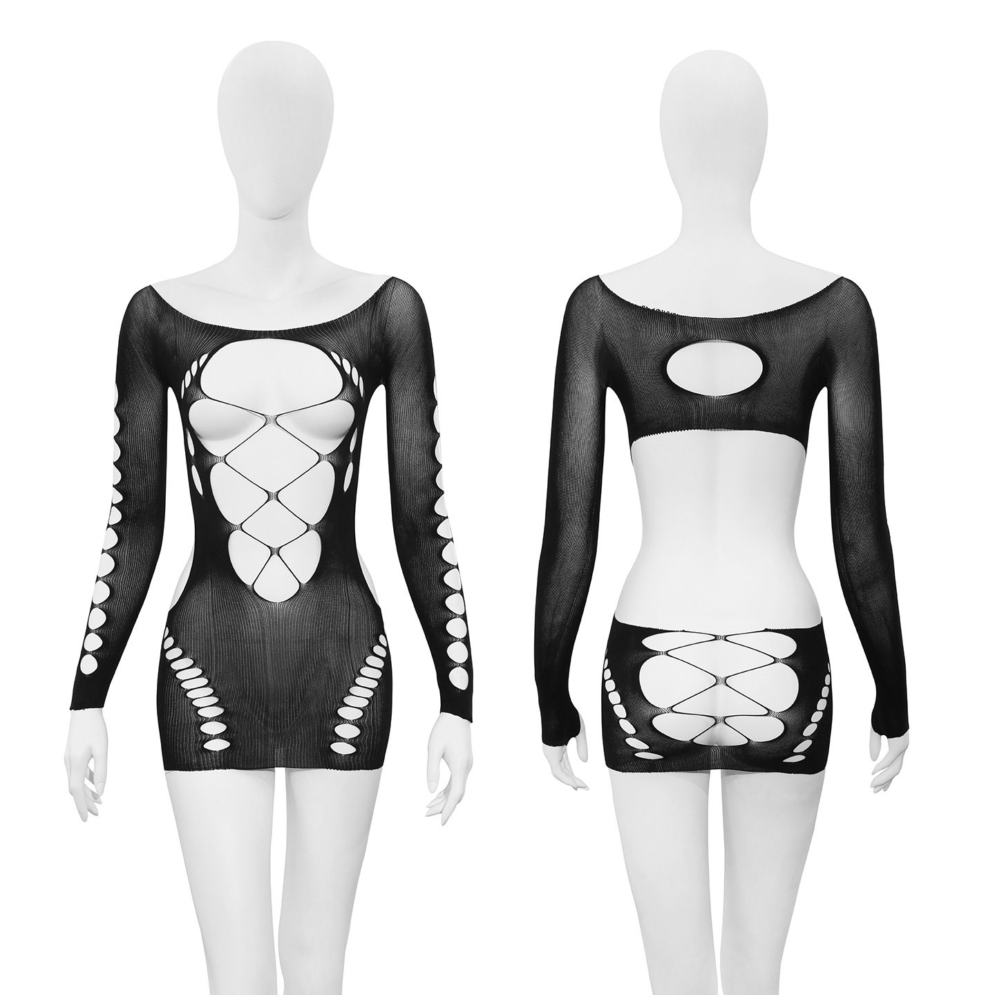 霏慕撕扯性感破洞镂空网衣连身袜