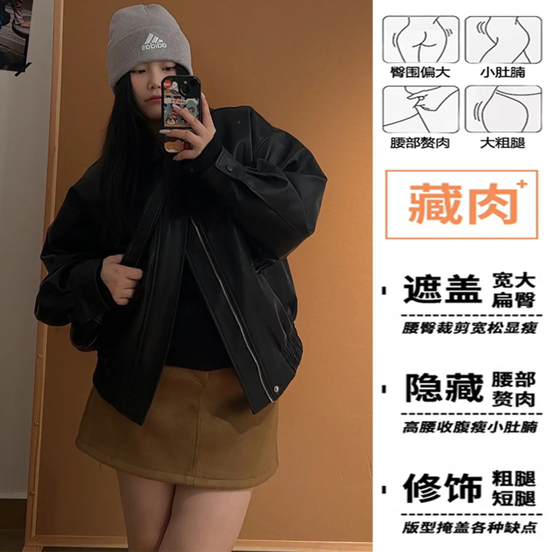 复古棕色麂皮半身裙女秋冬韩系百搭大码高腰显瘦鹿皮a字包臀短裙
