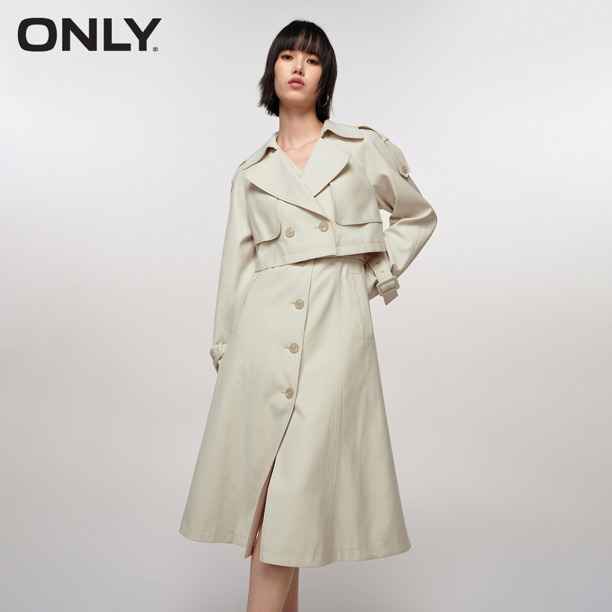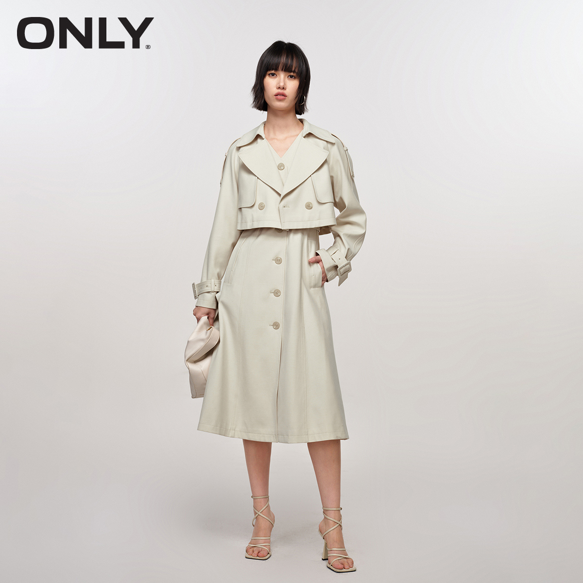 【ONLY奥莱】秋冬休闲时尚V领连衣裙套装风衣外套女