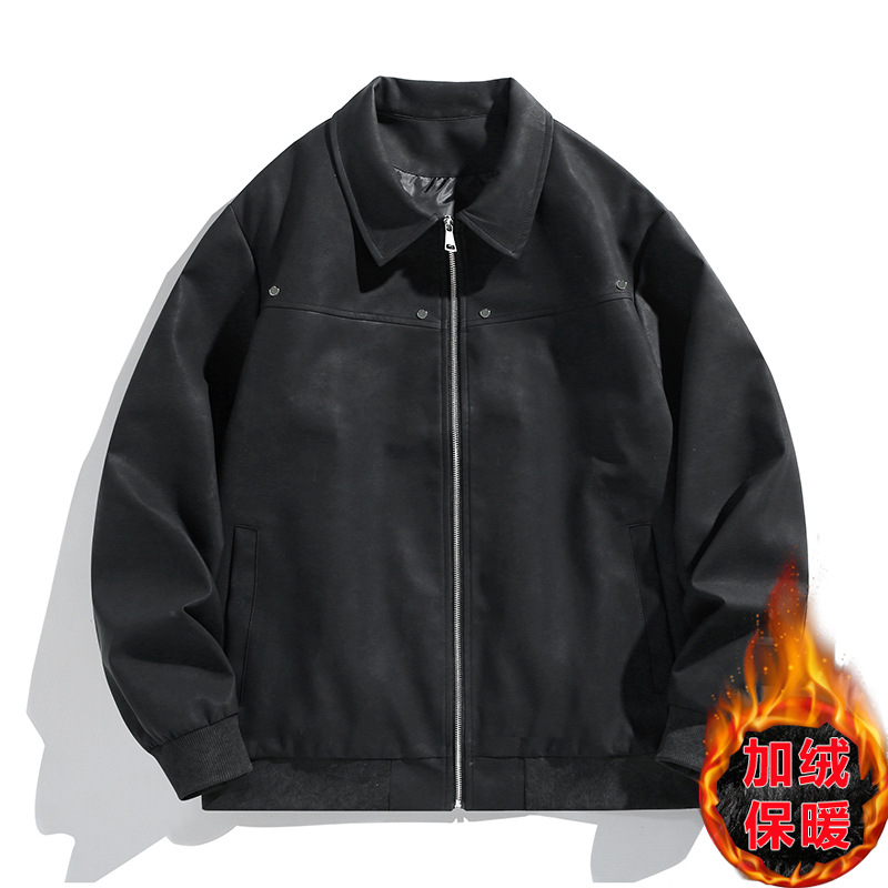加绒加厚大码男士皮夹克加棉外套