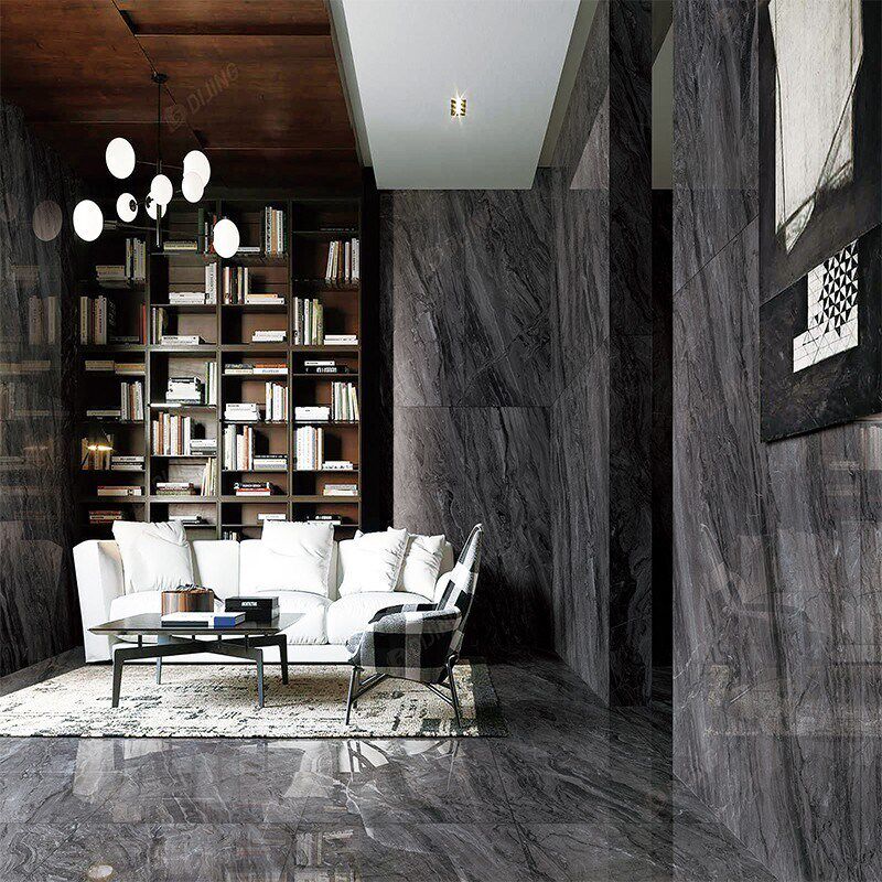 黑色奢石通体大理石瓷砖客厅防滑耐磨地砖酒店别墅背景墙
