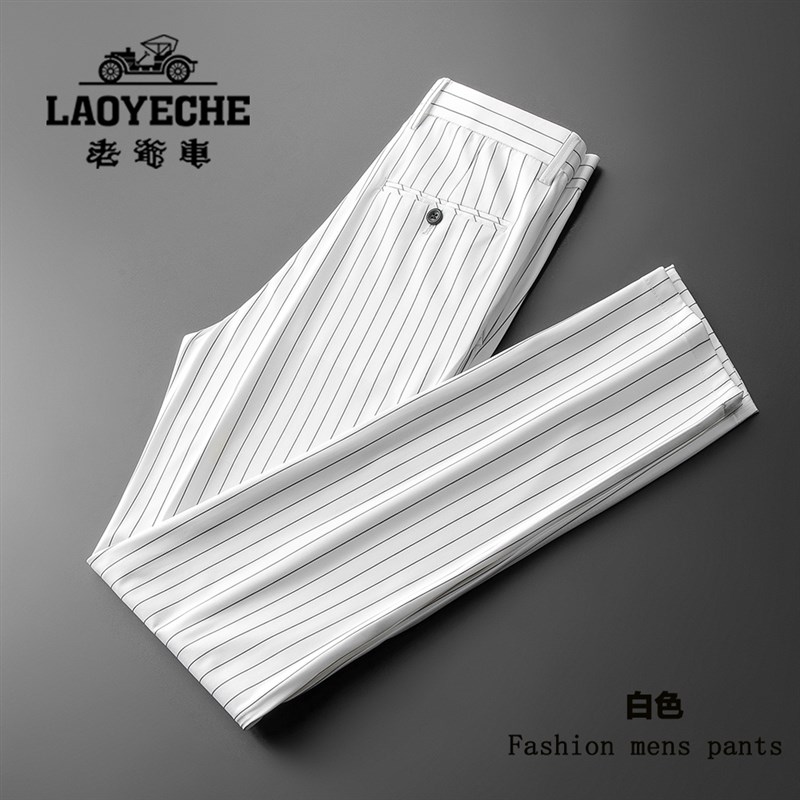 老爷车男士春夏季时尚百搭抗皱免烫弹力薄款条纹修身小直筒休闲裤