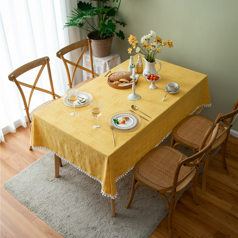 法式浪漫棉麻剪花白色白毛球桌布长方形茶几台P布餐桌布台布盖巾