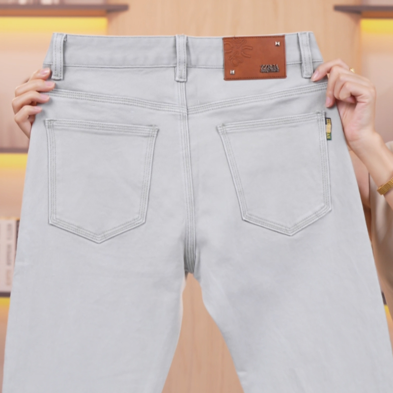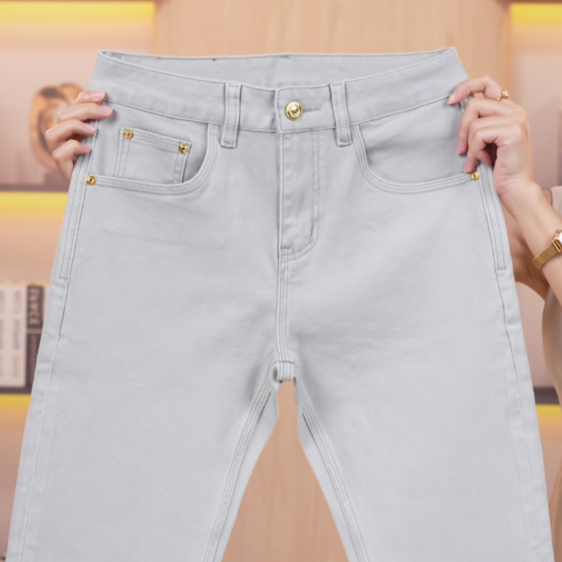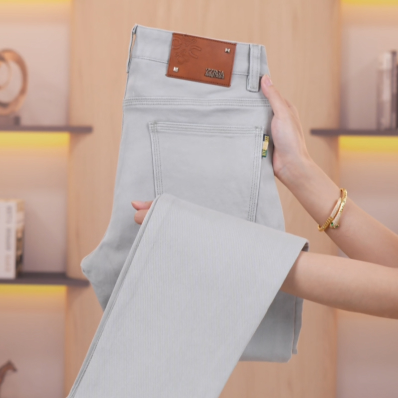 秋冬新款浅灰色牛仔裤男士高端简约大气修身小直筒百搭弹力长裤子