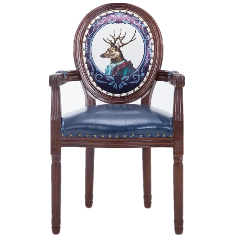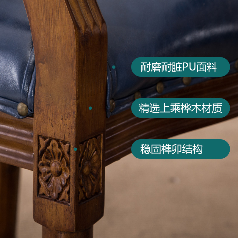 美式餐椅欧式实木复古靠背椅子法式咖啡厅凳子定做餐厅书房洽谈椅