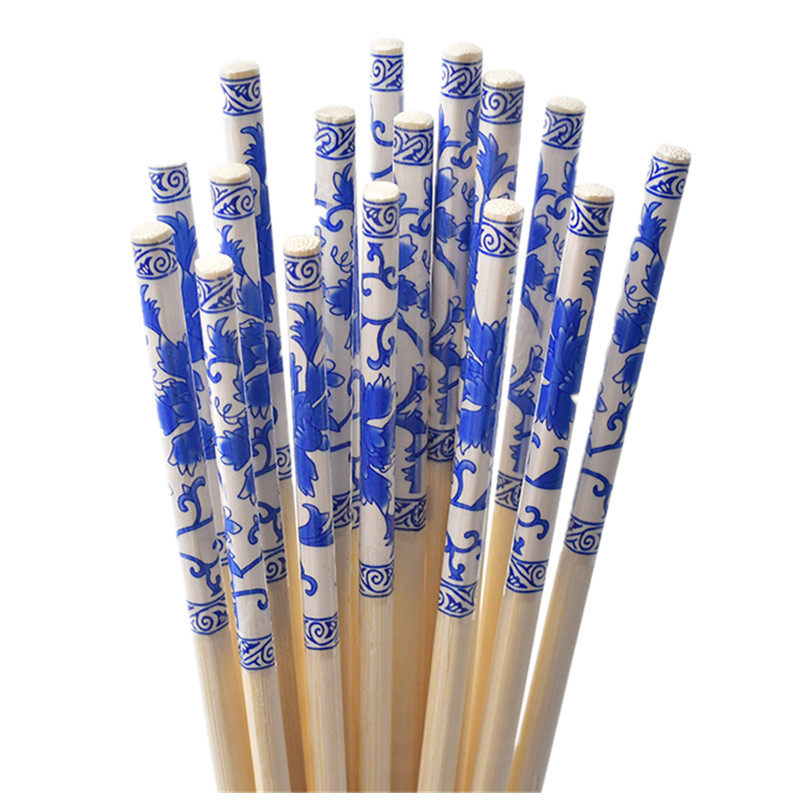 筷子一次性家用100双饭店餐具火锅店酒席用餐厅竹快粗青花筷商用