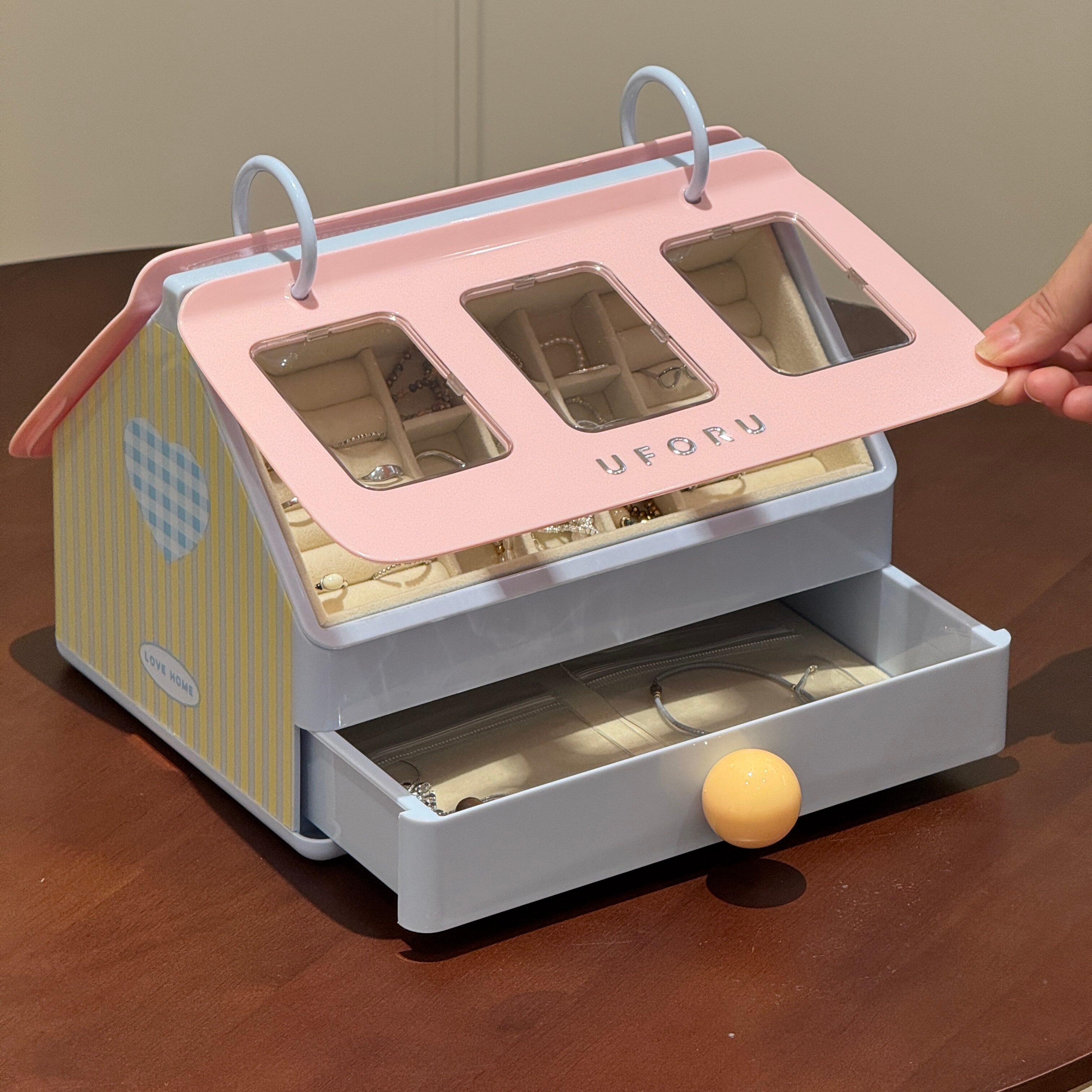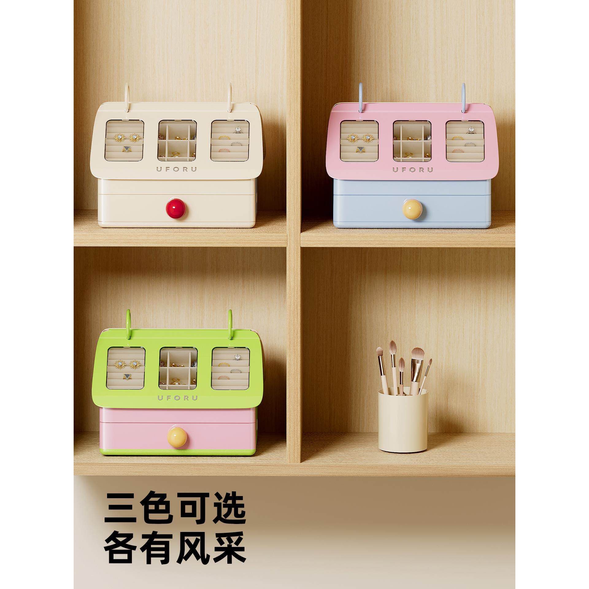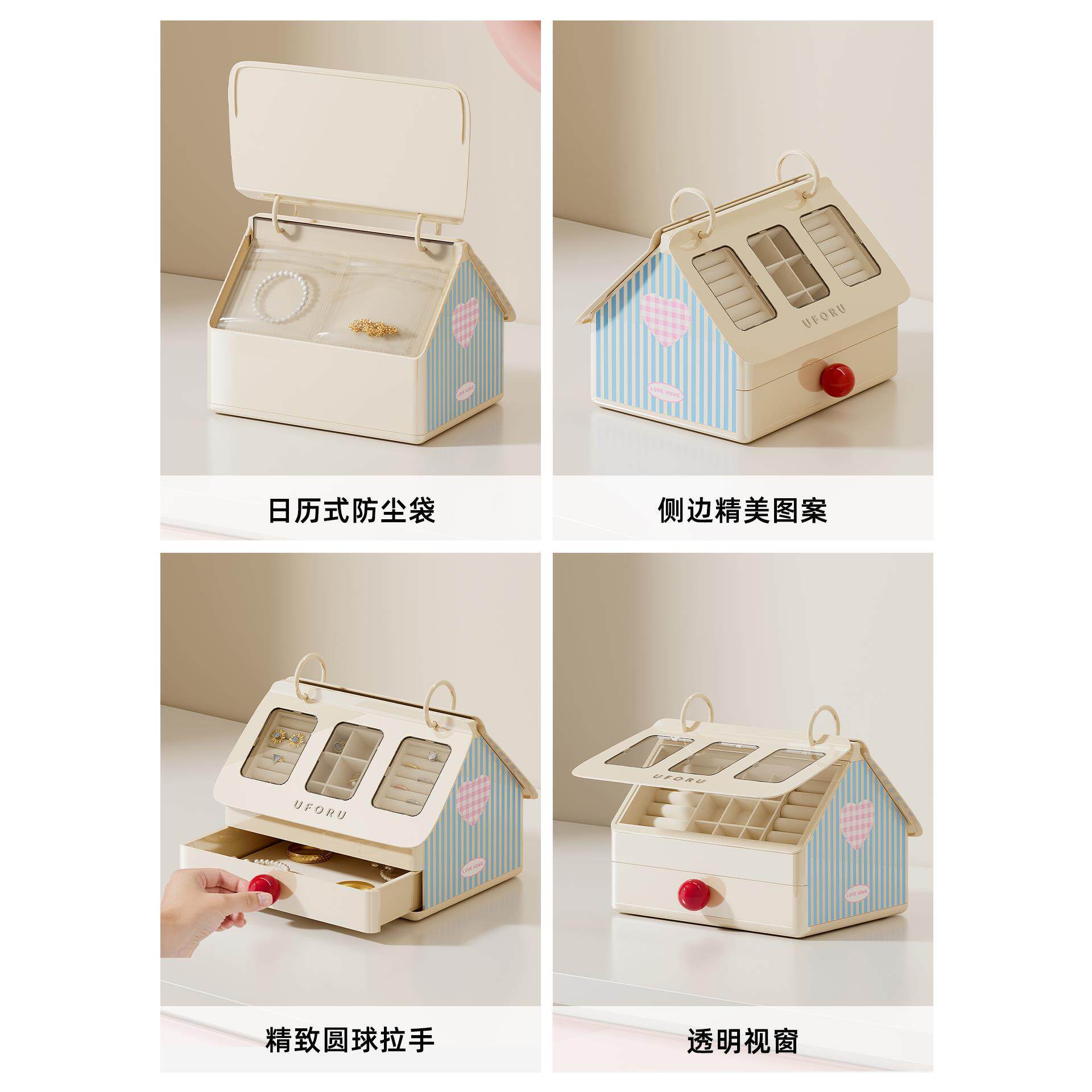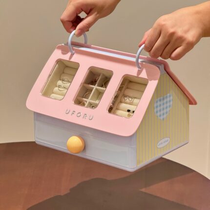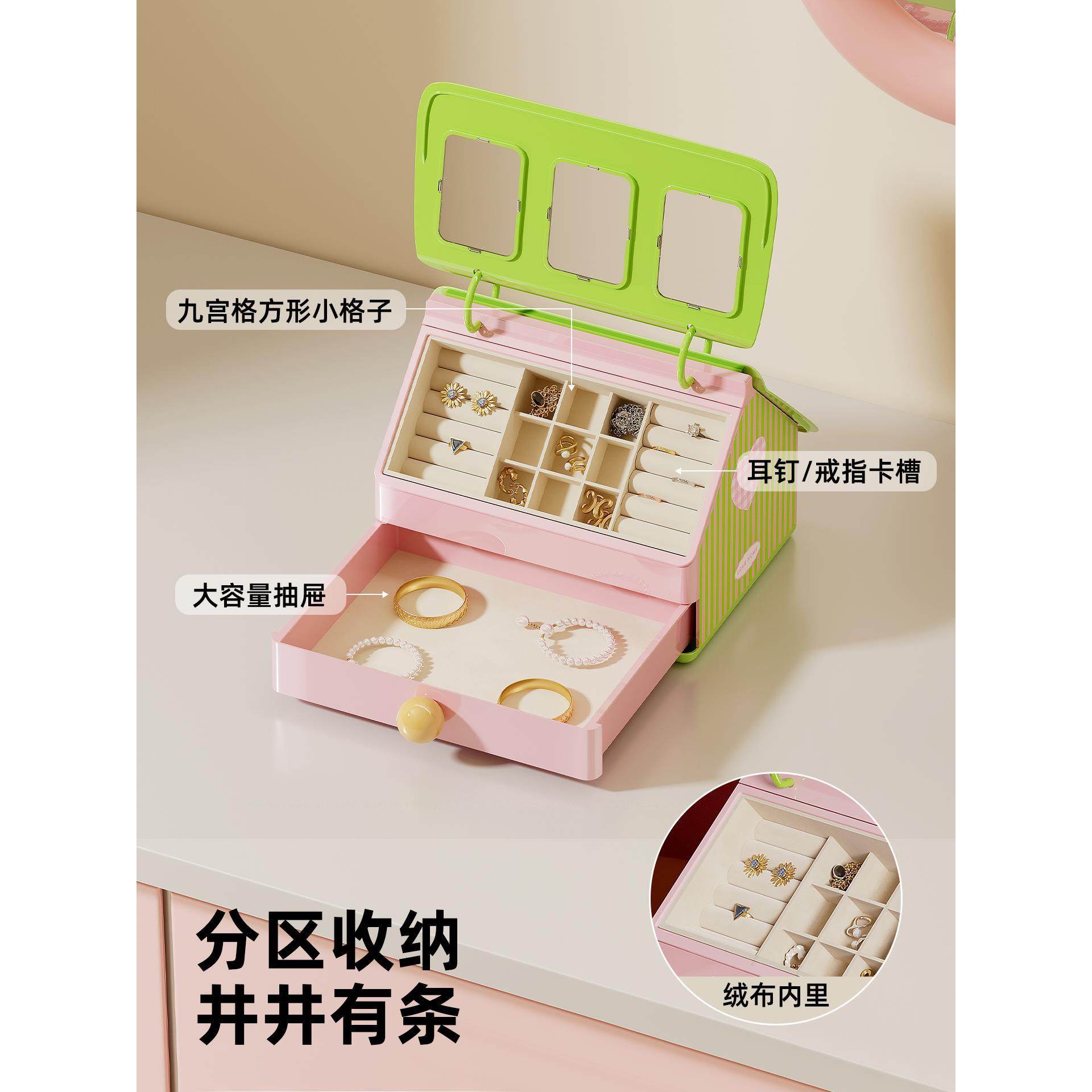 小房子首饰收纳盒高档新款珠宝戒指耳环分类桌面收纳大容量存放盒