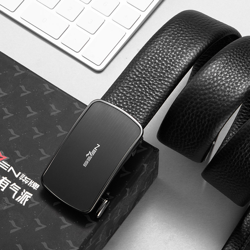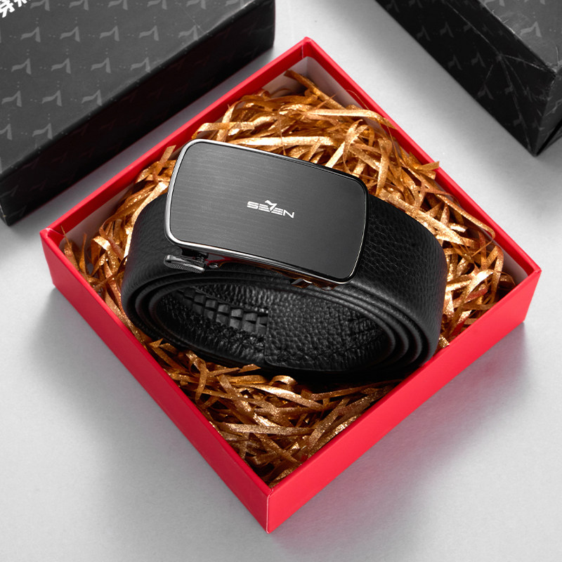 【亚光内扣扣头】柒牌皮带男士真皮自动扣商务头层牛皮腰带礼盒