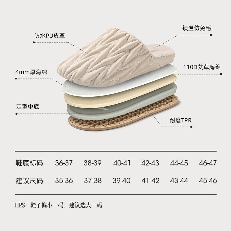 日本进口2025新款高级感防水棉拖鞋pu皮秋冬季保暖加绒居家用室内