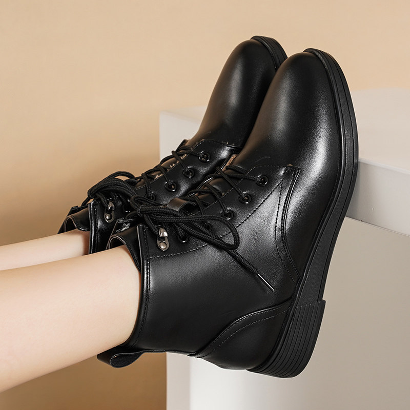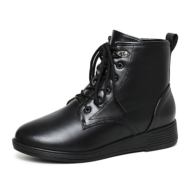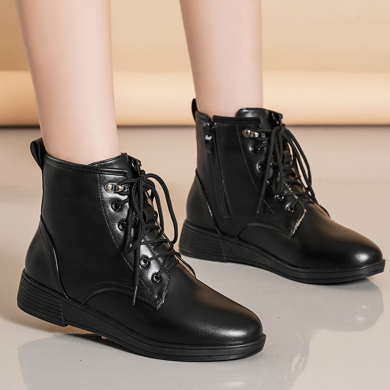 系带真皮单靴冬季加绒棉鞋