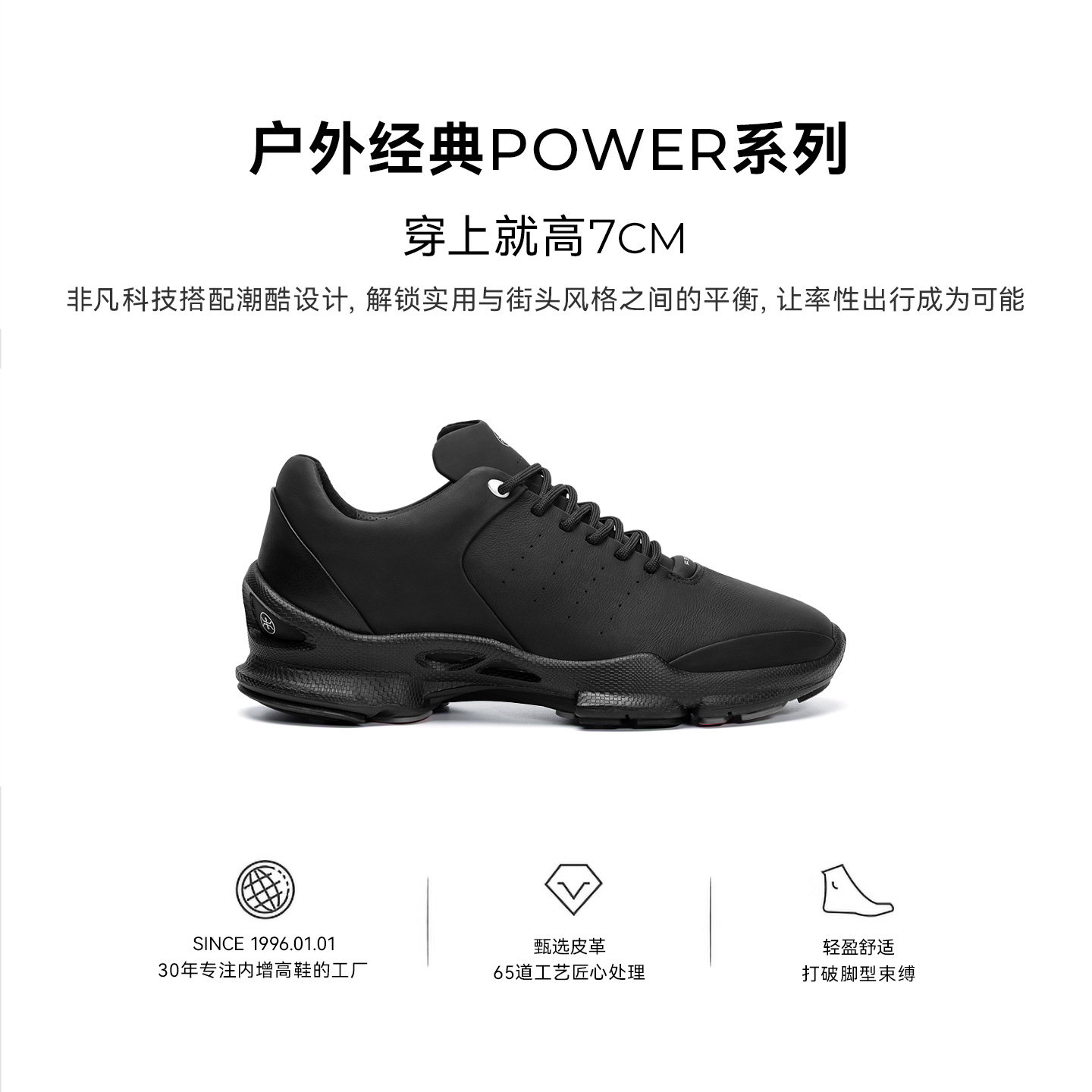 何金昌内增高运动鞋男2026春季新款牛皮户外登山鞋厚底休闲鞋7cm