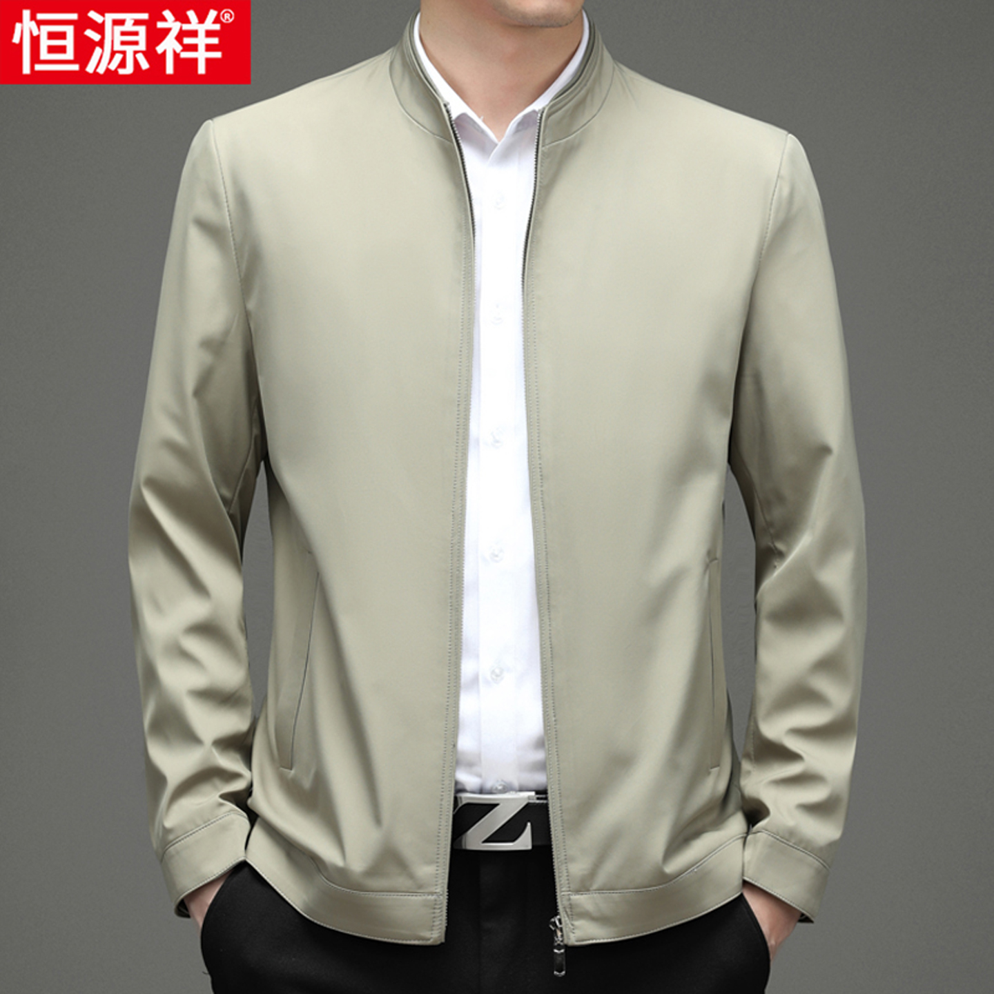 恒源祥男装春秋夹克中年男士商务休闲立领宽松免烫透气外套爸爸装