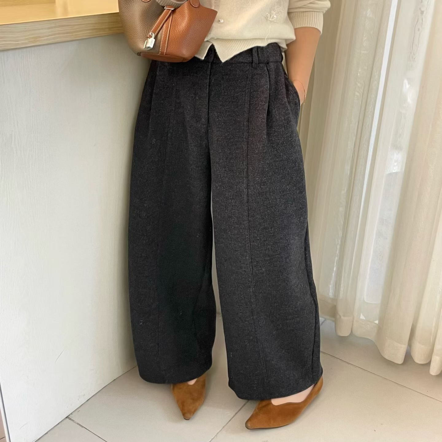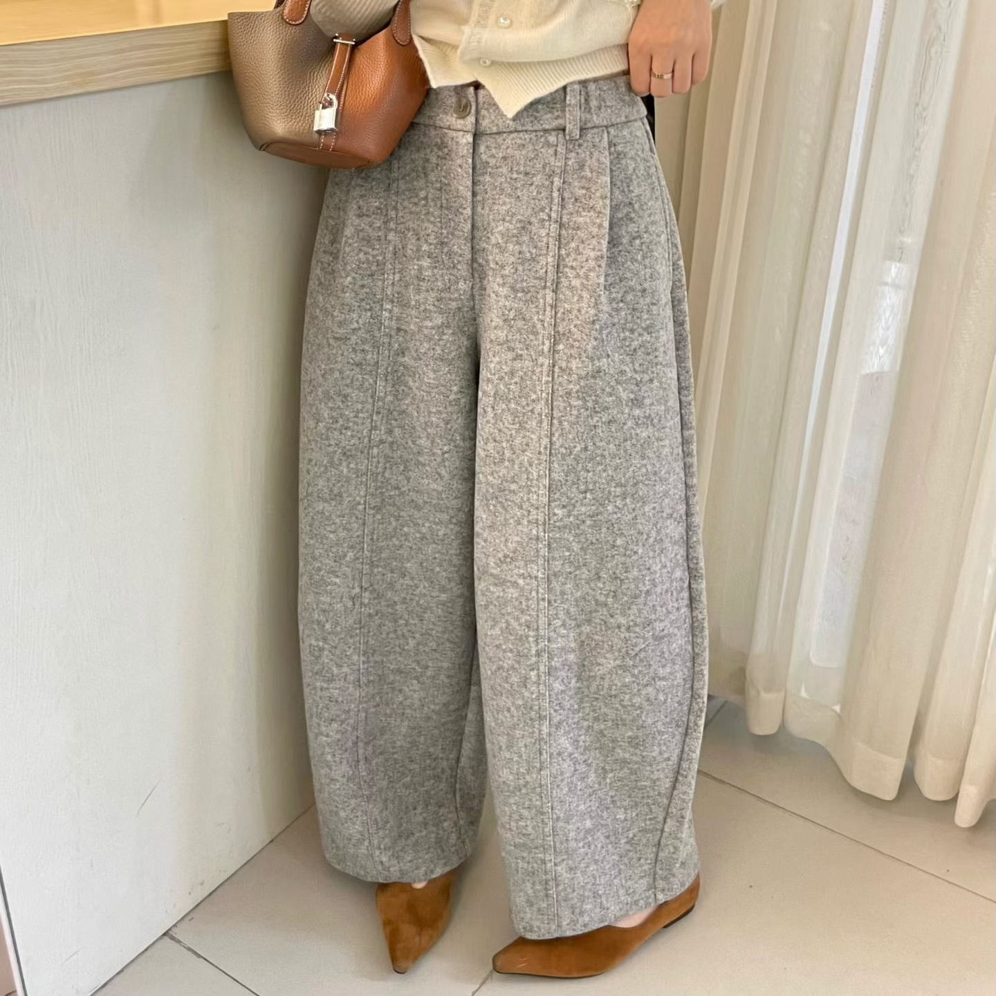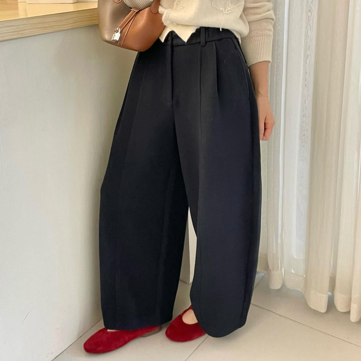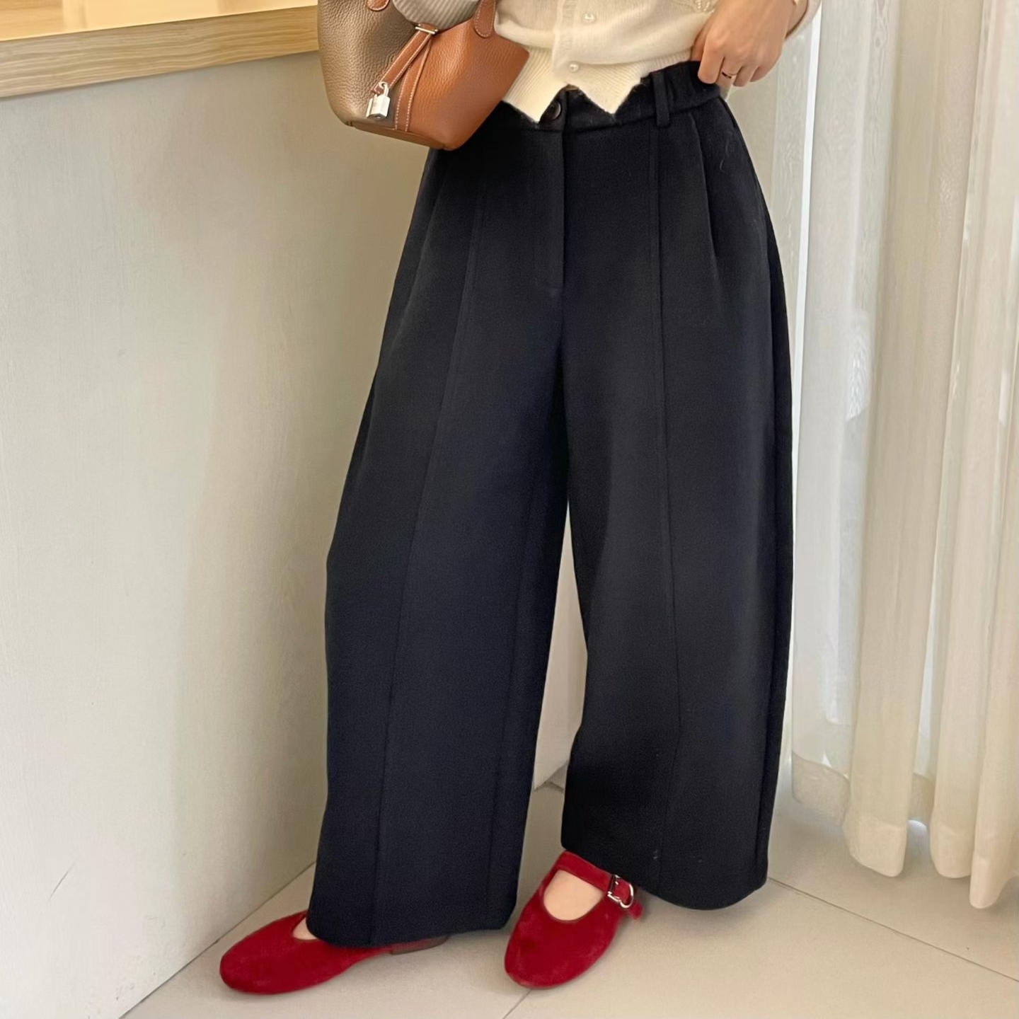 欧洲站2025秋季时尚高腰一粒扣微垮褶皱前压线显瘦九分羊毛西装裤