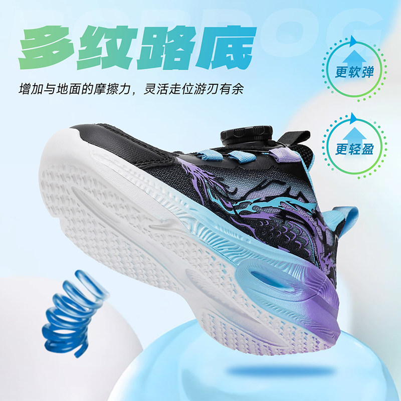 巴布豆童鞋男童运动鞋2026新款时尚春季旋纽扣篮球鞋大童儿童鞋子