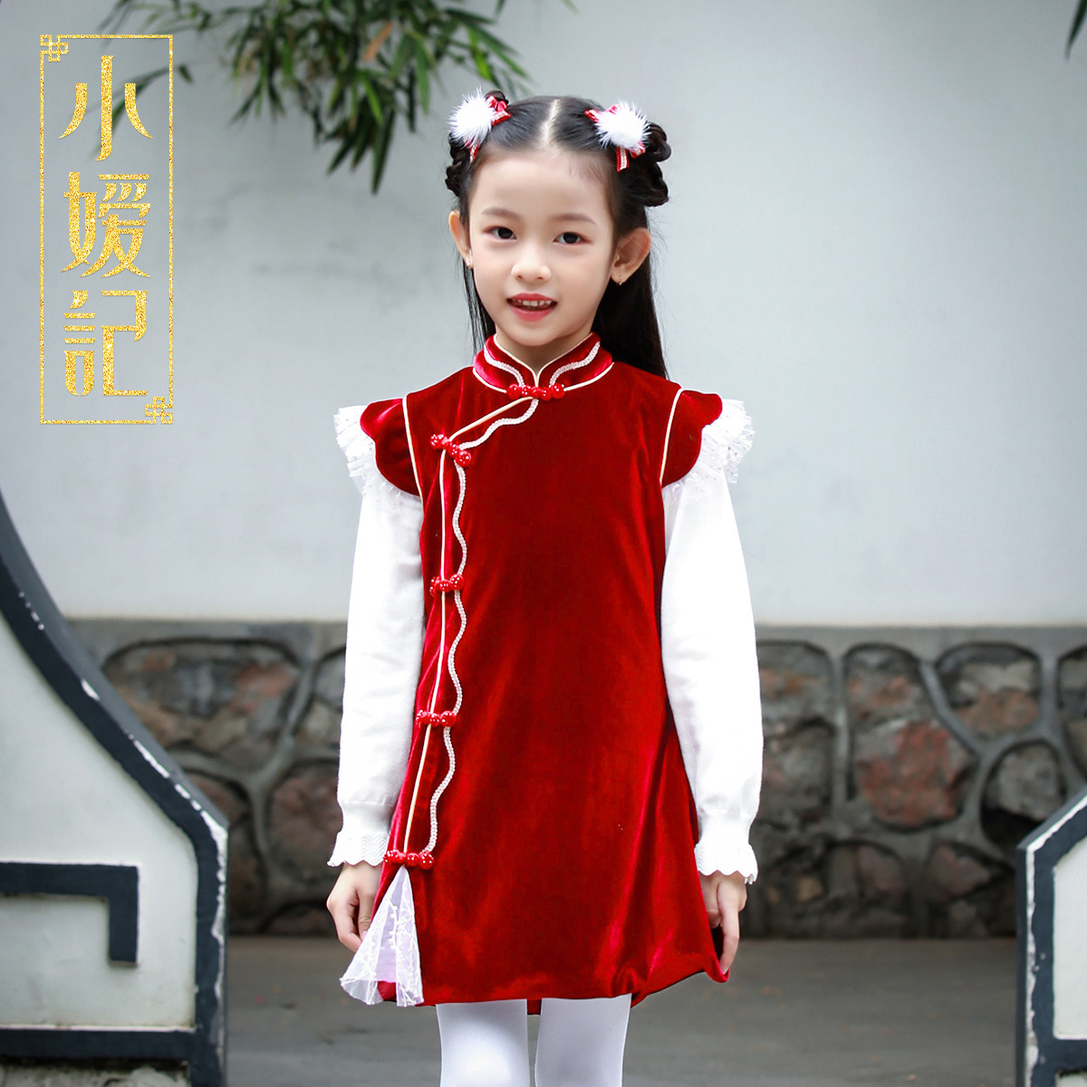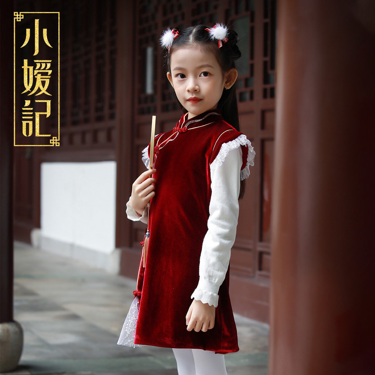 pureshare蓬纱馆 女童套装连衣裙儿童新中式改良版旗袍裙秋冬唐装