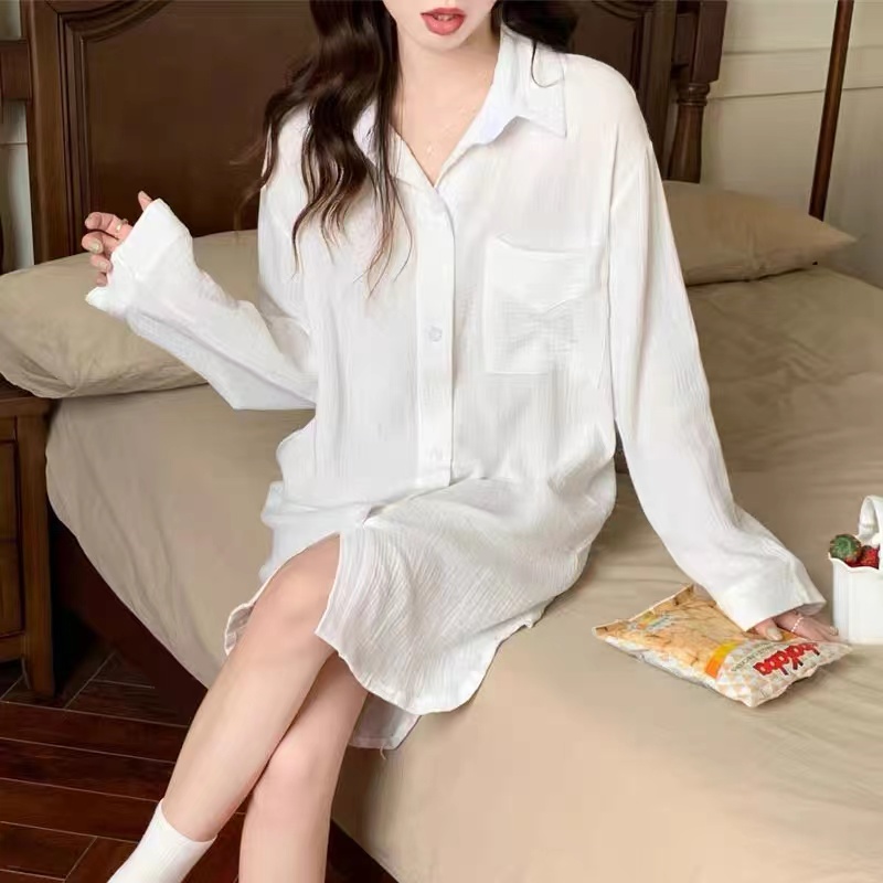 DEE 高级感性感棉麻棉纱睡衣女春秋季纯棉长袖套装睡裙新款家居服