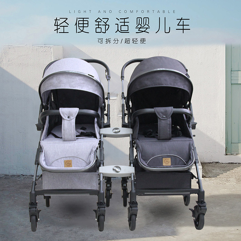 四轮万向可拆分双胞胎婴儿推车可坐躺轻便携折叠双人童车可横着推