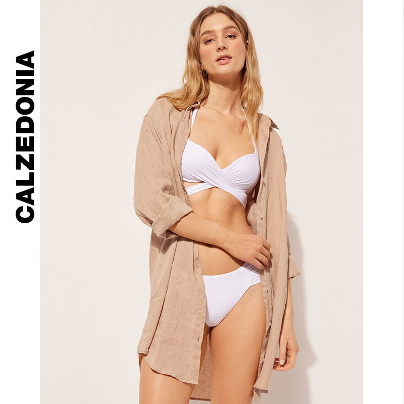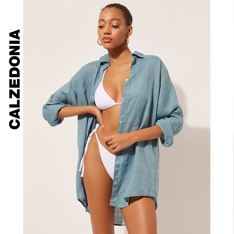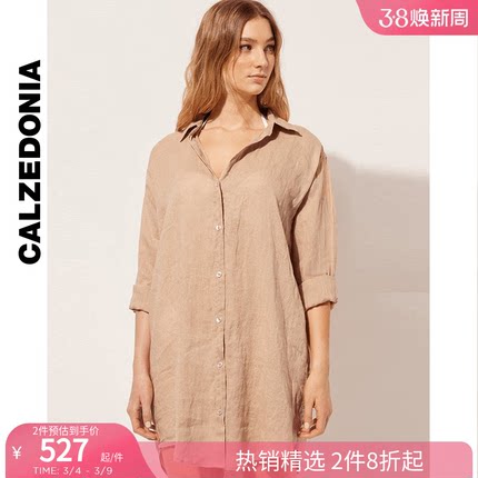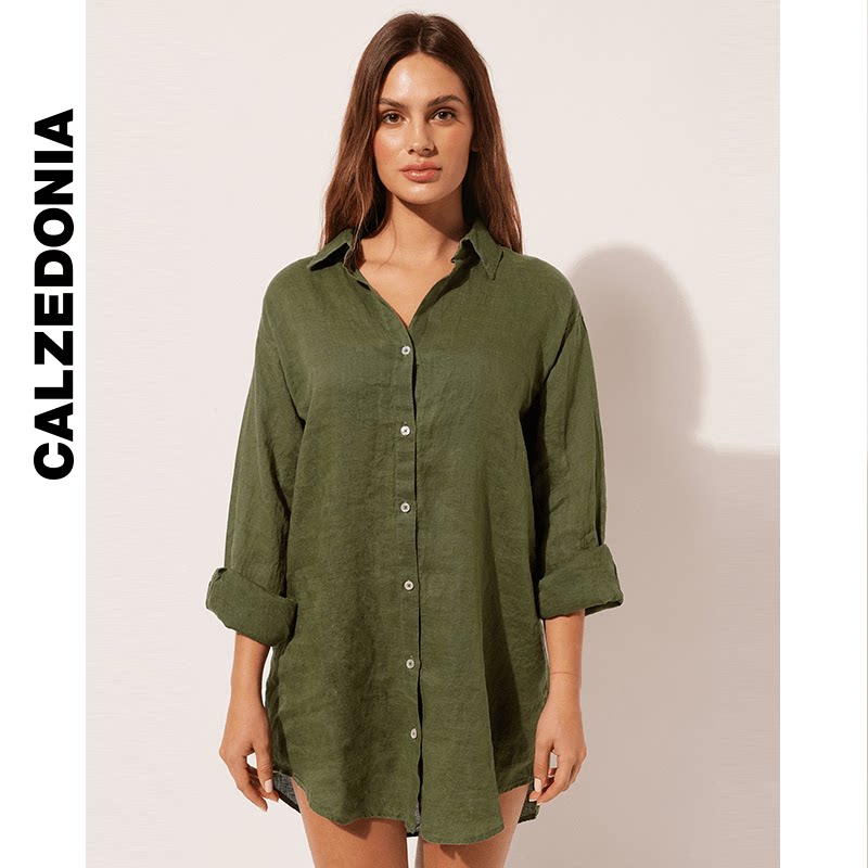 CALZEDONIA卡泽意袜夏女士时尚纯色透气轻薄衬衫式连衣裙0BDA104