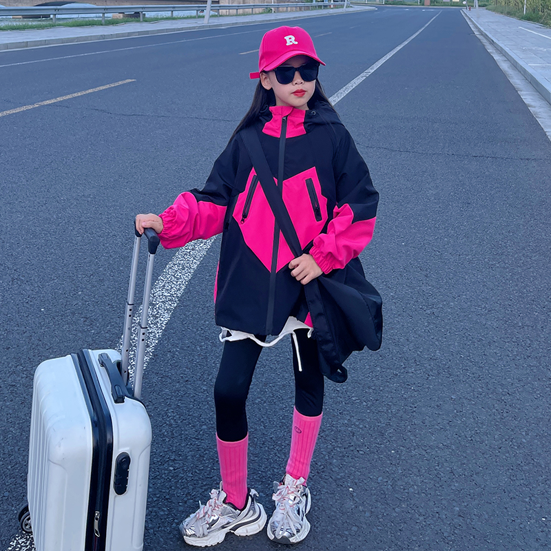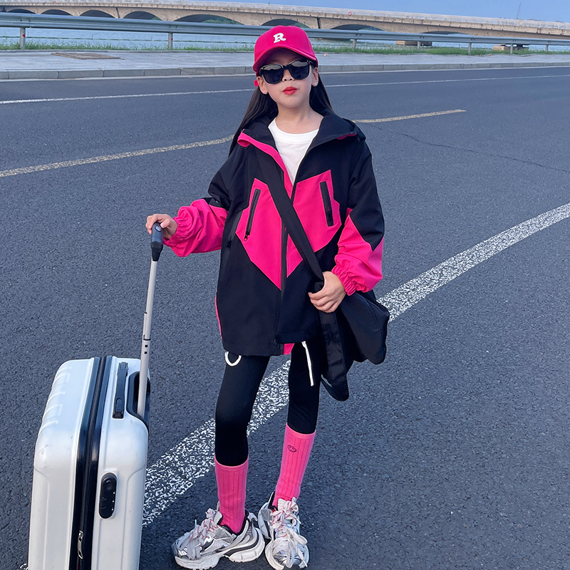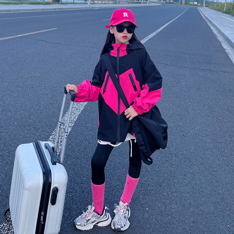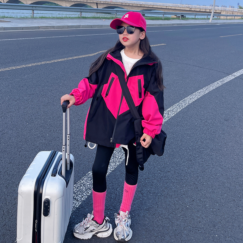 女童冲锋衣外套春秋款2025新款儿童洋气时髦秋冬中大童装女孩上衣