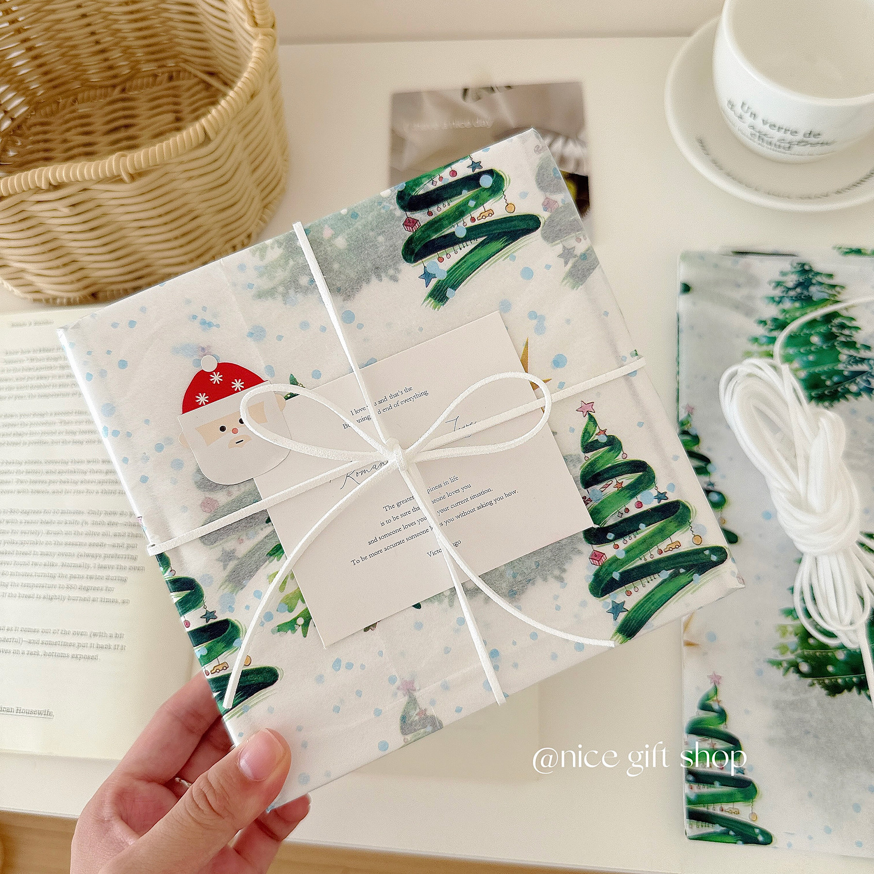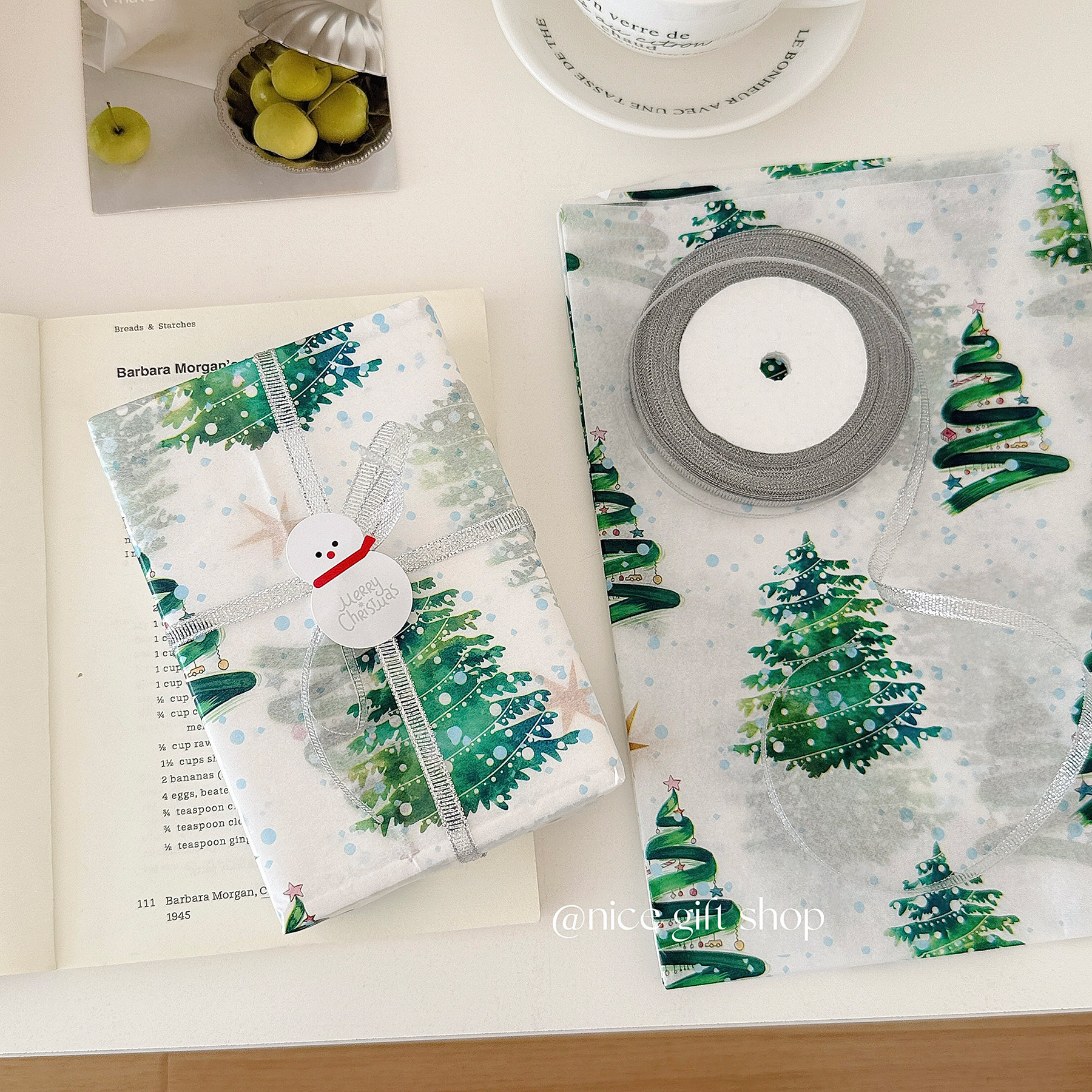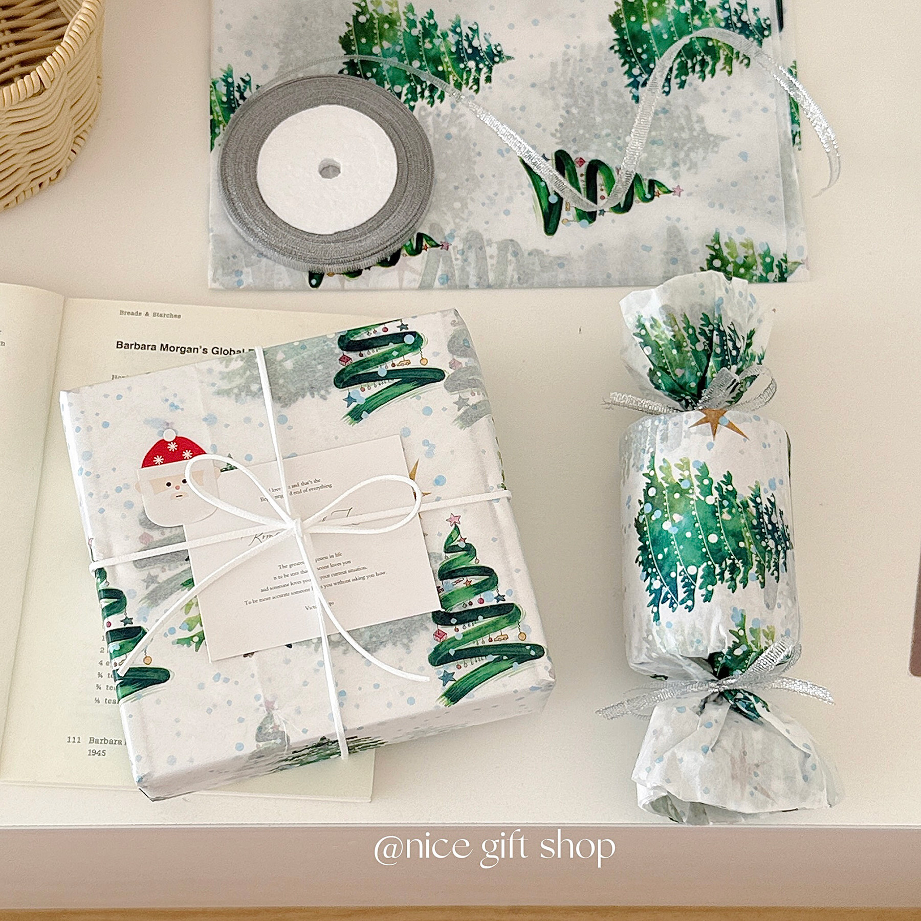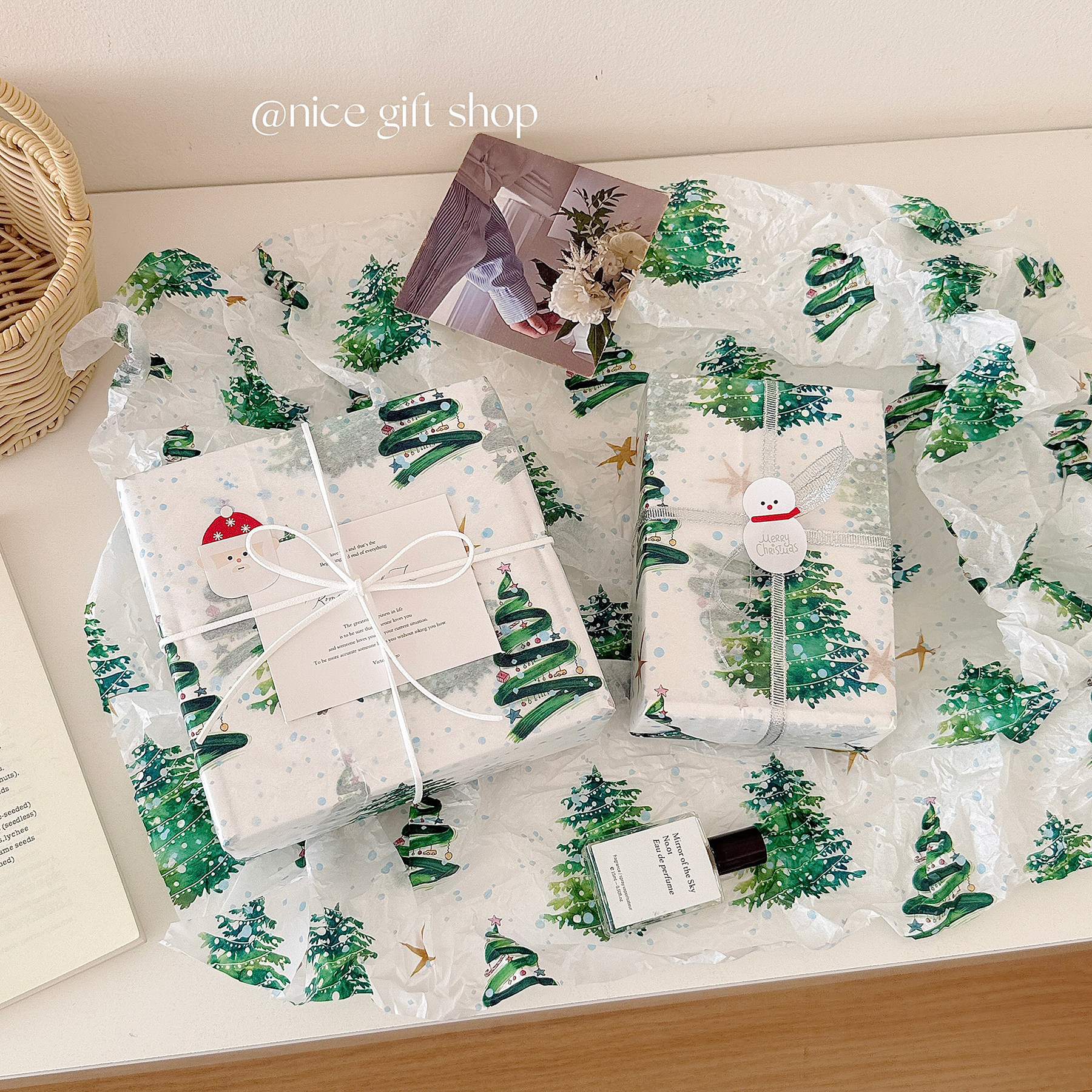 氛围感绿色圣诞树礼物包装纸~ins风冬季节日礼品装饰雪梨纸打包纸