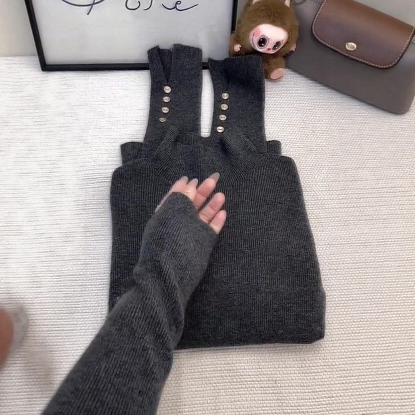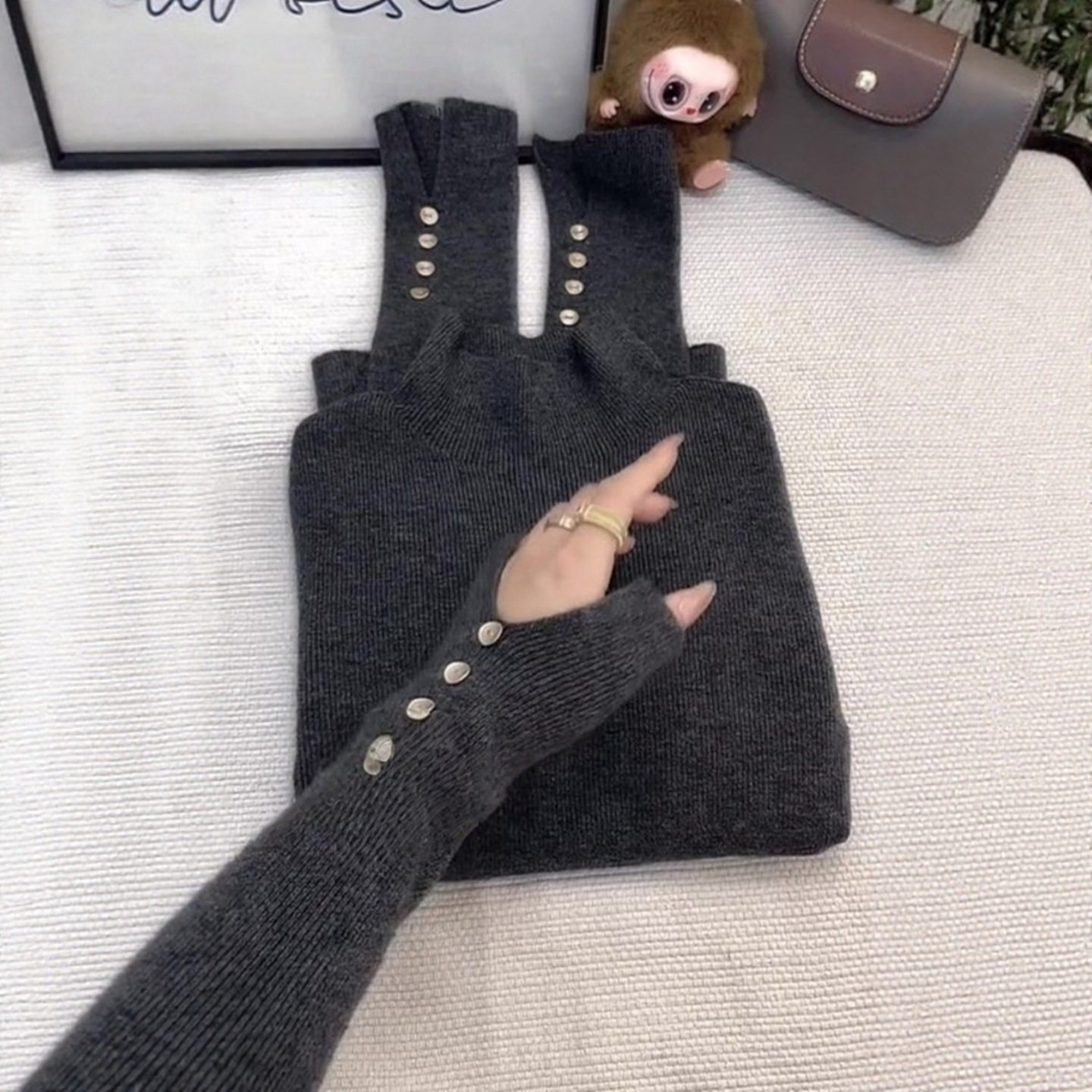 秋冬内搭灰色半高领针织衫女设计高级感打底毛衣短款修身软糯上衣