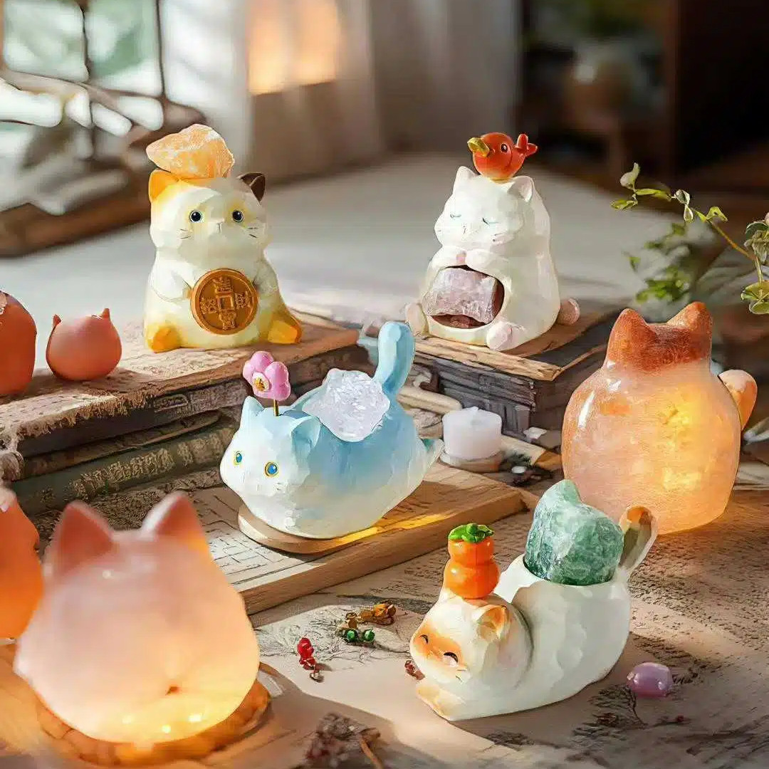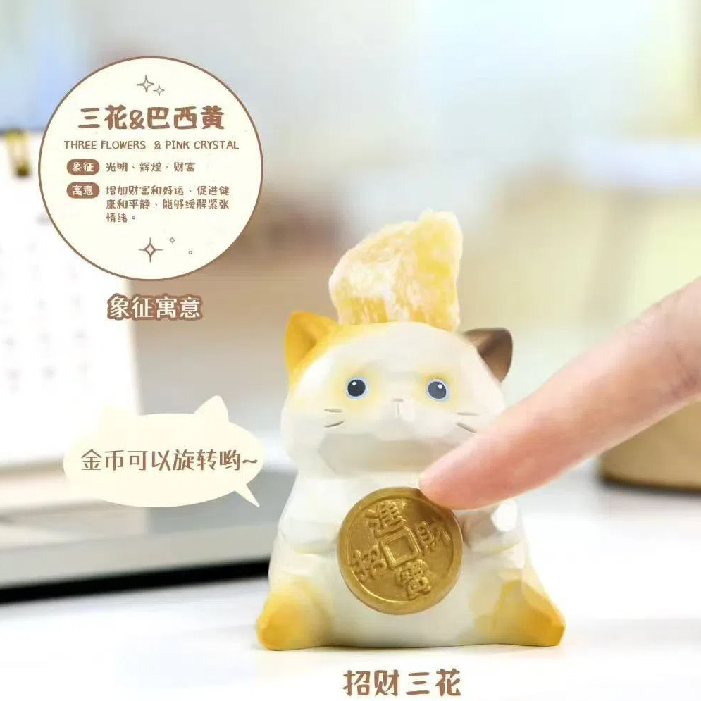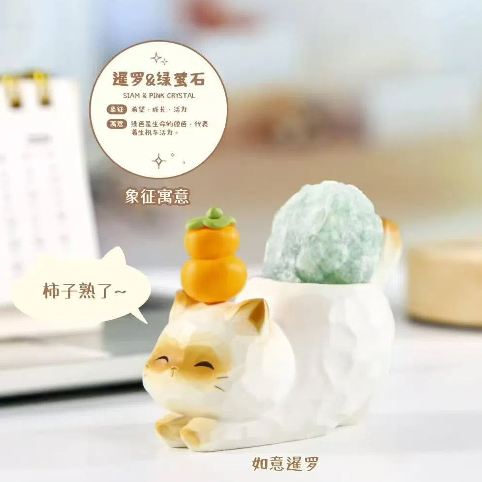 正版猫猫能量PAI盲盒水晶摆件可爱黑猫暹罗猫原石小豆丁生日礼物
