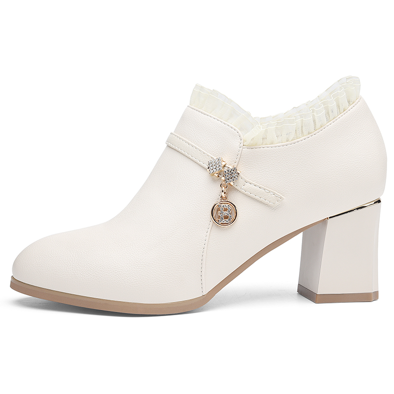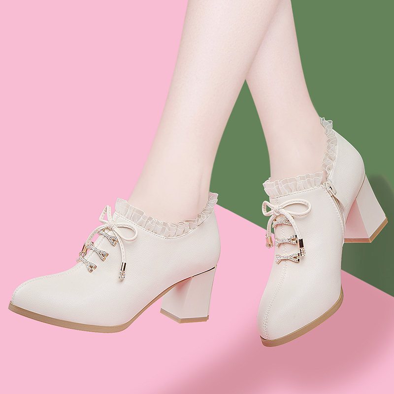 小圆尖头春秋女士皮鞋中跟包鞋2025年新款女鞋真皮深口高跟鞋粗跟